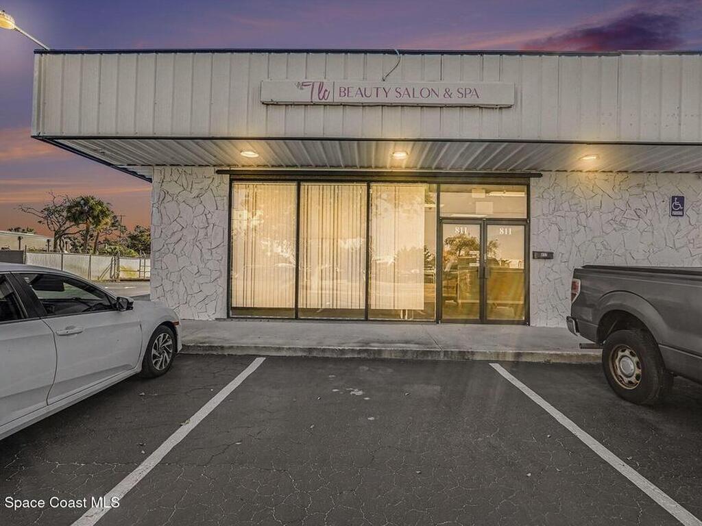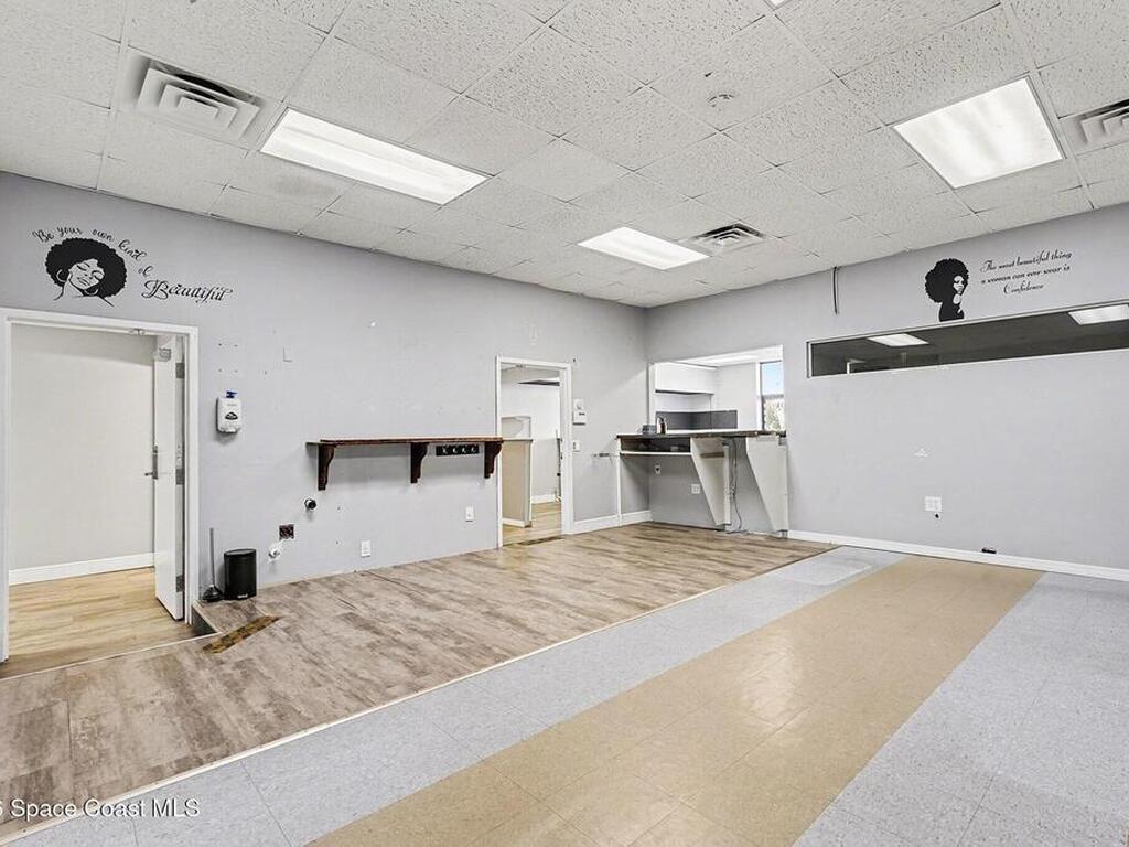 1219sqft of office/retail space on highly visible, high traffic Hibiscus Blvd just off of US1. 425 sq feet of garage/warehouse space with a roll up door for added storage for deliveries. Design the space to your needs, currently set up as a salon. 2 bathrooms. Parking lot. Adjacent professional offices.