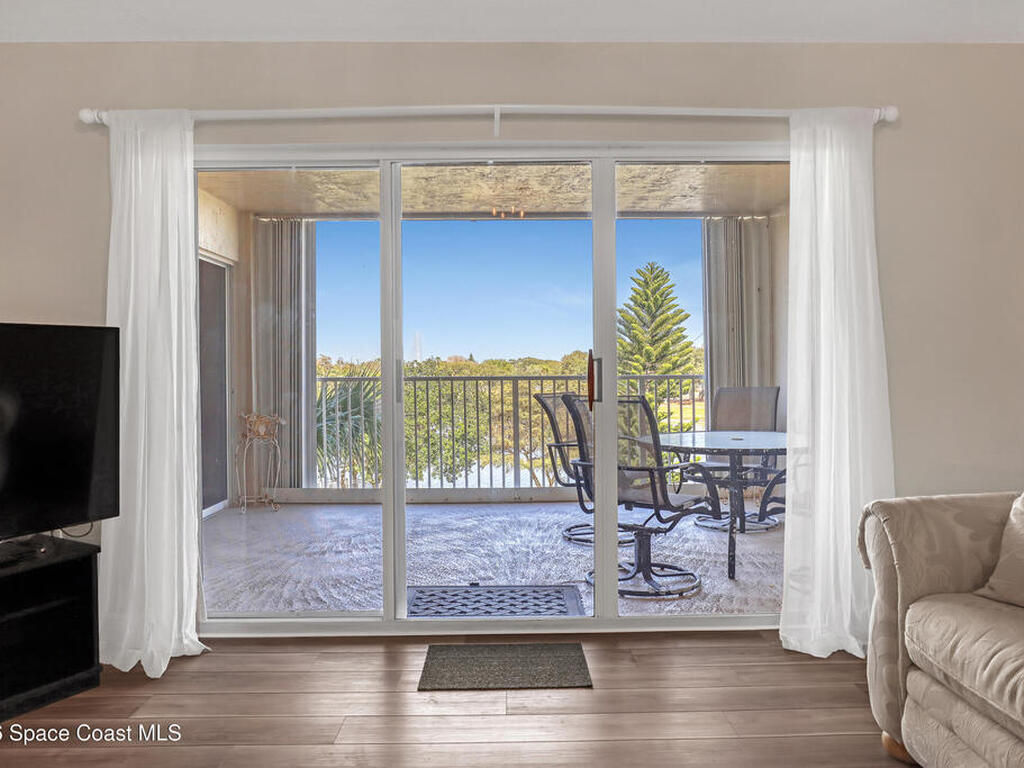 Enjoy resort-style living in this 2-bedroom, 2-bath condo in desirable Cape Canaveral with stunning views of cruise ships and rocket launches. Each bedroom features a private en-suite bathroom and its own walk-in closet, offering comfort and privacy for owners and guests alike. The open-concept living space includes a kitchen with granite countertops, no carpet throughout, and seamless flow to a private balcony overlooking the lake and port. Community amenities include pickleball and tennis courts, fitness center, sauna, community center, and direct beach access. Whether you're seeking a full-time residence or a seasonal retreat, this well-appointed community offers the perfect coastal lifestyle.
