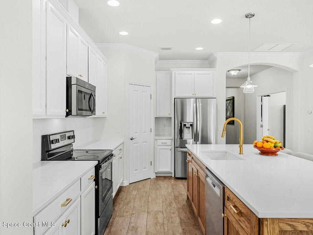 Water views set the tone the moment you walk in, and from there the upgrades keep stacking: an extended great room with crown molding (2016) opens into an updated kitchen featuring quartz counters, stainless steel appliances, and a renovated island (2022), creating a clean, modern space that actually feels made for everyday living and easy entertaining. Plantation shutters (2022) add that finished, polished look, while the extended lanai (2016) pulls you outdoors to soak in the view. And if a pool is on your wish list, the heavy lifting is already done with a pool pre-wire in place (2016). All of it sits right in the center of West Viera--close to everything you want, zoned for A-rated schools, and set up for a lifestyle that's equal parts effortless and upgraded.