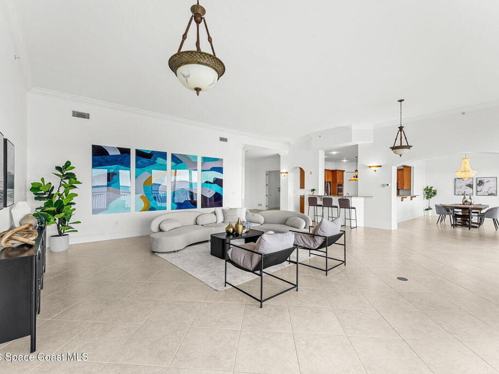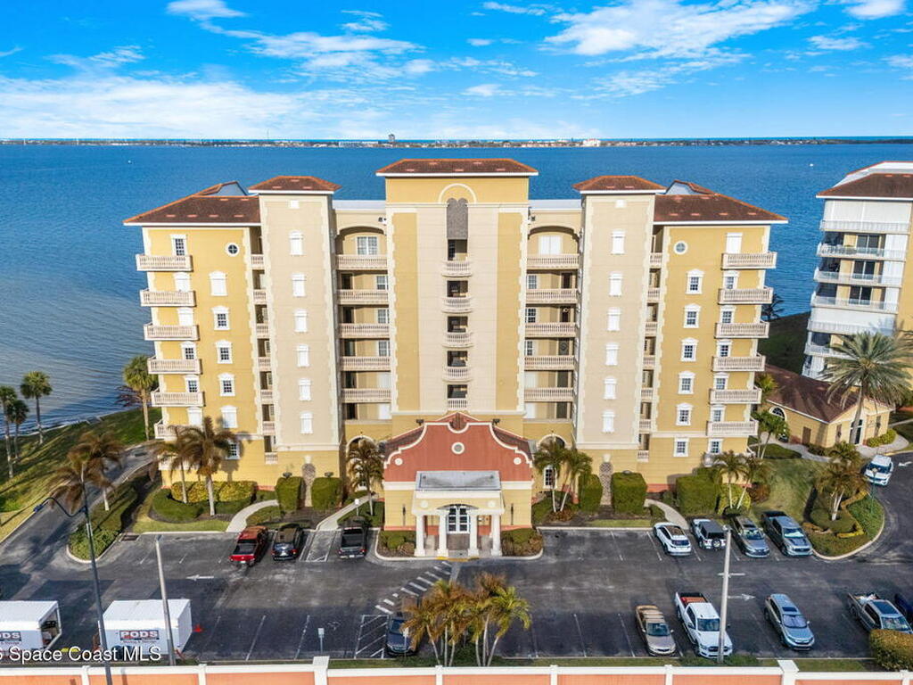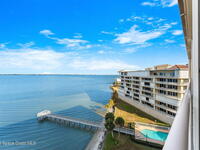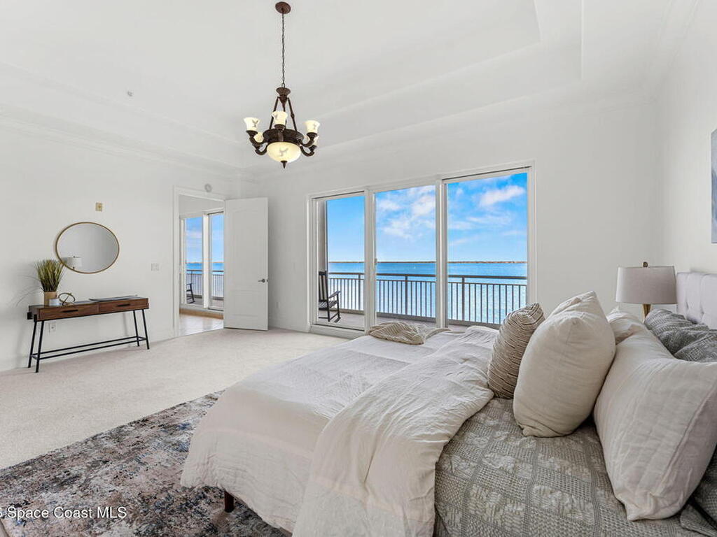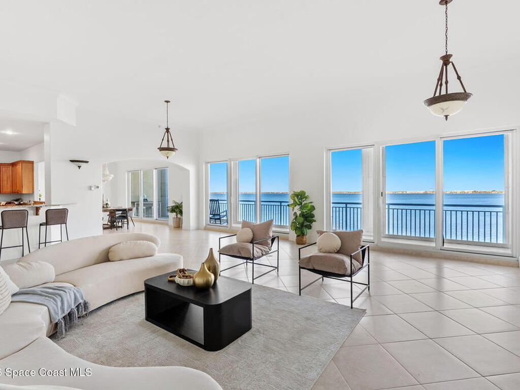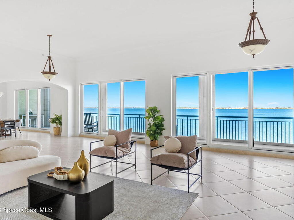 Celebrate ravishing Indian River vistas from your private 8th-floor balcony as luxury rises to a new level in this extraordinary 3, 500+ sq. ft. penthouse in Palm Bay, where soaring 13-foot ceilings, floor-to-ceiling impact glass, & a breathtaking wall of sweeping sliders frame endless waterfront & city views in every direction. Designed for both grand entertaining & quiet indulgence, the expansive open-concept layout flows effortlessly to an oversized terrace, filling the home w/ natural light & an unmistakable sense of coastal sophistication. A gourmet kitchen anchors the space w/ timeless finishes, while a private office behind French doors adds elegance & versatility. The opulent primary suite feels like a personal retreat, complemented by beautifully appointed en-suite guest rooms & modern upgrades including new impact windows, shutters, & updated appliances. Set within a resort-style community just moments from premier dining, shopping, & the shoreline, this is penthouse living.