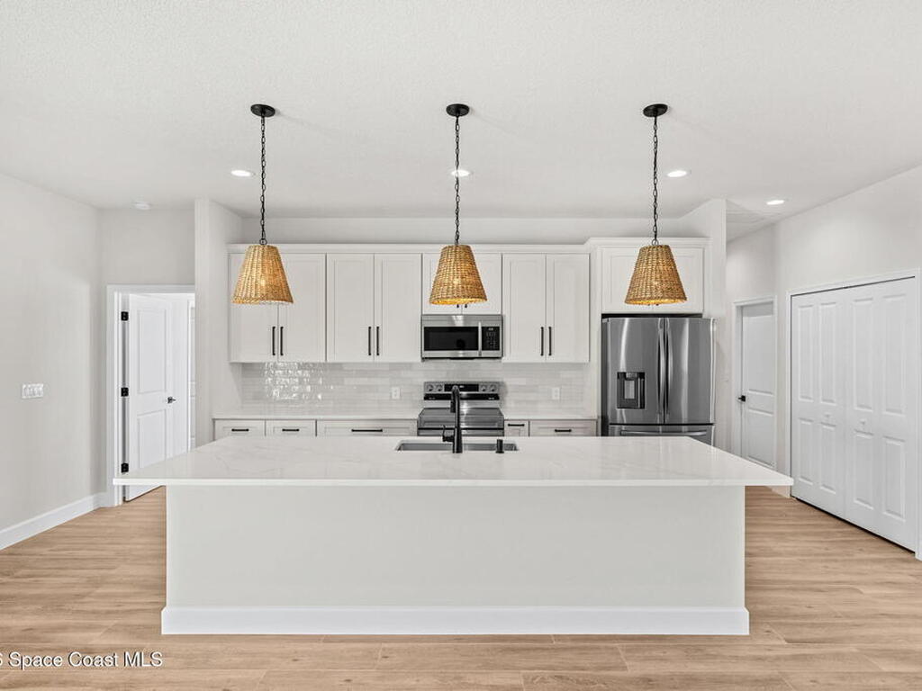 Brand new and built like a custom house, this Arianna model by a renowned local builder delivers 2, 074 sq ft of premium, storm-smart design with 4 bedrooms, 2.5 baths, and zero HOA, pairing underground power, an impact-rated front door, impact-rated garage door, PGT impact windows, and an impact-rated sliding glass door for everyday confidence. A 24-ga standing seam metal roof secured with double straps and FORTIFIED Gold(tm) certification reinforces the home's most vulnerable points to help keep high winds, wind-driven rain, and storm pressures where they belong--outside--while wood-look tile throughout creates a clean, cohesive finish that's both polished and practical. Modern essentials stay dialed in with a tankless water heater plus city water paired with septic, making this new build feel elevated from the bones outward--simple, solid, and built for peace of mind.
