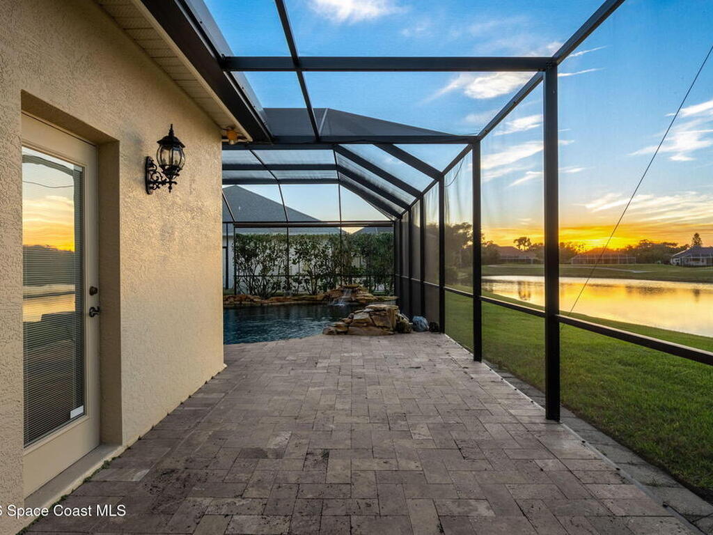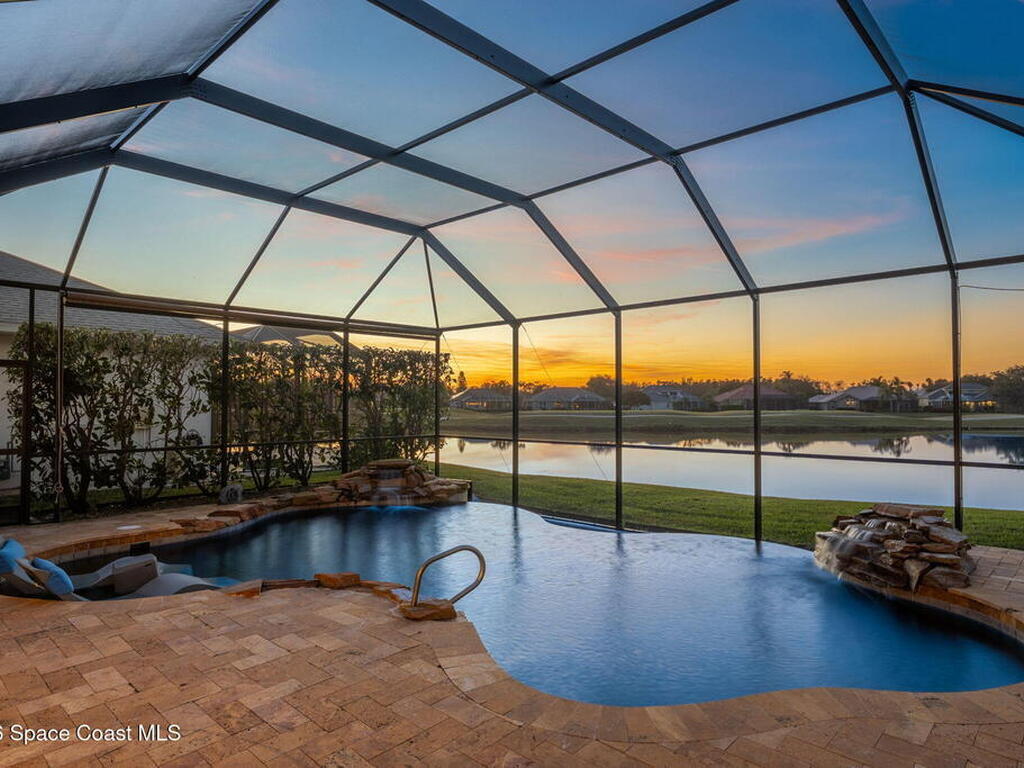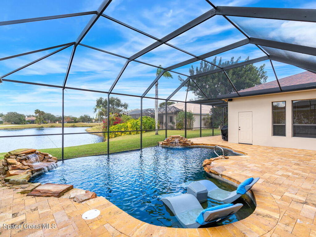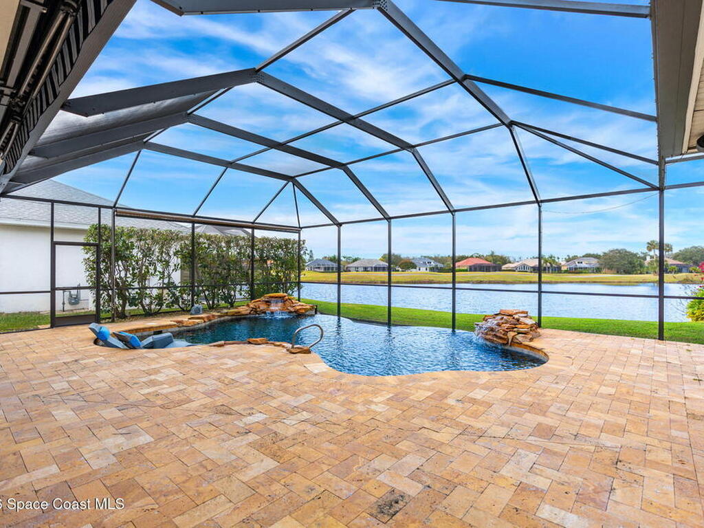 Located within the sought-after Baytree neighborhood of Suntree, this lakefront residence offers a thoughtful blend of comfort, privacy, and everyday livability in one of Brevard County's most established and well-regarded communities. Known for its quiet streets, strong school systems, and exceptional sense of safety, Baytree remains one of the Space Coast's most consistently desirable residential settings.The home features four bedrooms and four baths with a well-designed split bedroom floor plan, including a first-floor primary suite that provides privacy and ease of living. High ceilings and connected living spaces create a natural, open flow throughout, while the main living areas and primary bedroom enjoy peaceful views of the pool and outdoor living space, reinforcing a relaxed indoor-outdoor atmosphere.