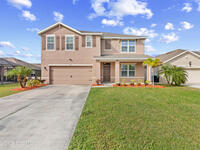 Application pending.Spacious, open, and light-filled, this newer 5-bedroom, 3-bath home is located in the gated Brentwood Lakes Preserve community. The thoughtfully designed floor plan includes a first-floor bedroom with a full bath, covered entry, and a relaxing covered lanai. Enjoy both formal living and separate family rooms, along with an eat-in kitchen featuring a large center island--perfect for everyday living and entertaining.Upstairs, the expansive primary suite offers dual sinks, a walk-in shower, and two walk-in closets. A convenient upstairs laundry, large flex room with closet, and three additional bedrooms provide plenty of space for family or guests. Residents enjoy access to a community pool with cabana and playground, and the rent includes cable, internet, and lawn service. Ideally located for convenience and comfort. Owner will consider dogs up to 35 lbs.