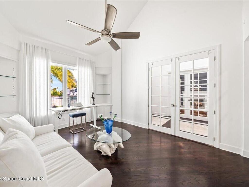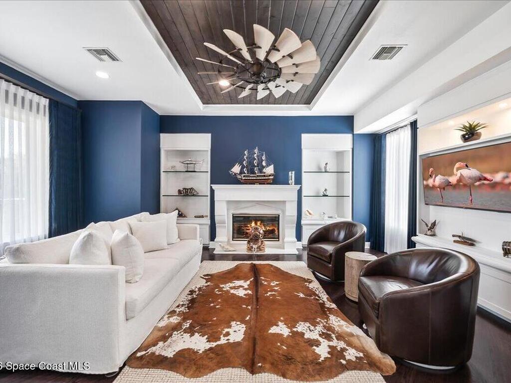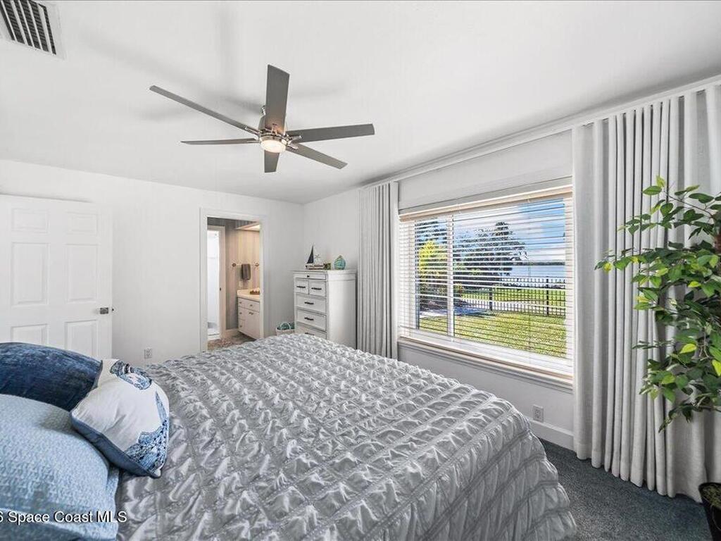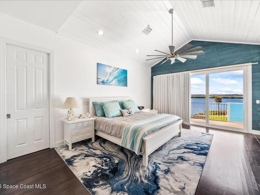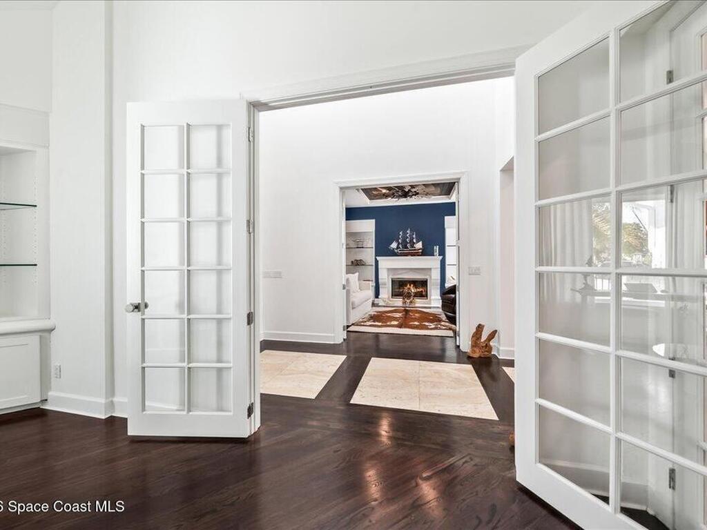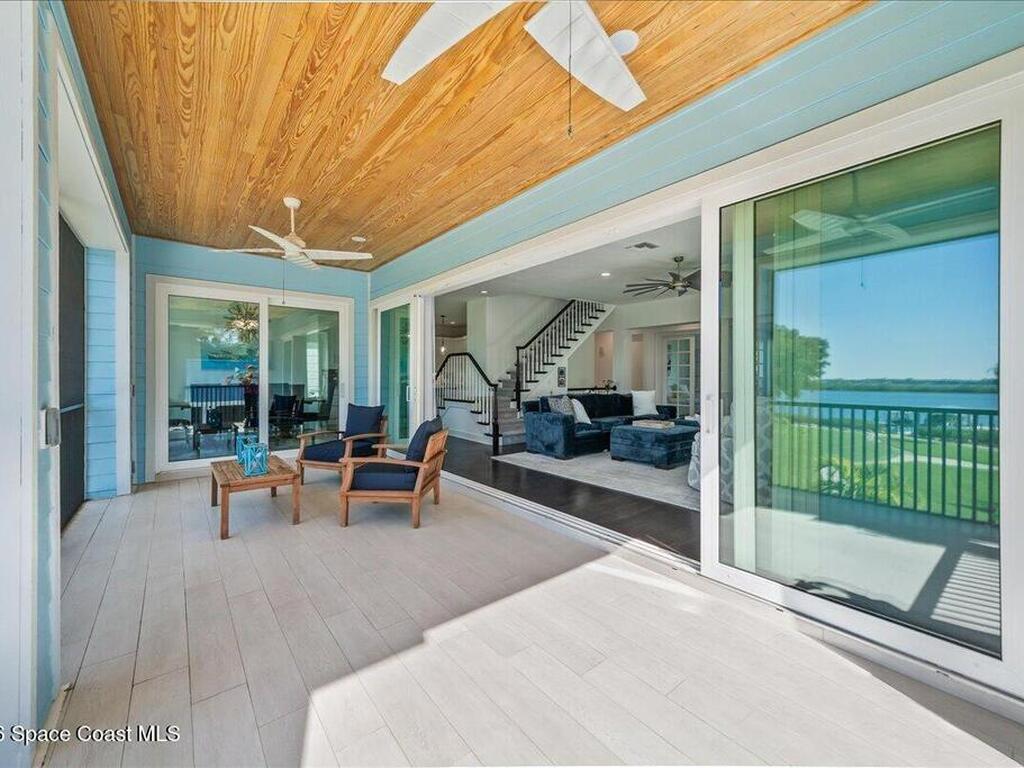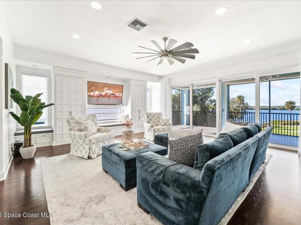 From the moment you step through the front door, you're greeted by sweeping, uninterrupted views of Honeymoon Lake, an immediate sense of arrival that sets the tone for the entire residence. Positioned along one of Brevard County's most coveted waterways, this singular waterfront estate is a study in quiet luxury and intentional design. Custom-stained oak hardwood floors, layered textures, and a gas fireplace create interiors that feel both polished and inviting, while the home's thoughtful layout draws the eye effortlessly toward the water beyond. Designed for seamless indoor-outdoor living, the exterior unfolds into a resort-style setting where a marble-framed pool, summer kitchen, and expansive pavered terraces invite long afternoons and elegant evenings. A powered dock with dual boat lifts provides direct access to the water, complemented by a Trex deck ideal for sunrise departures and sunset returns. Built with resilience and longevity in mind, the home features a metal roof,
