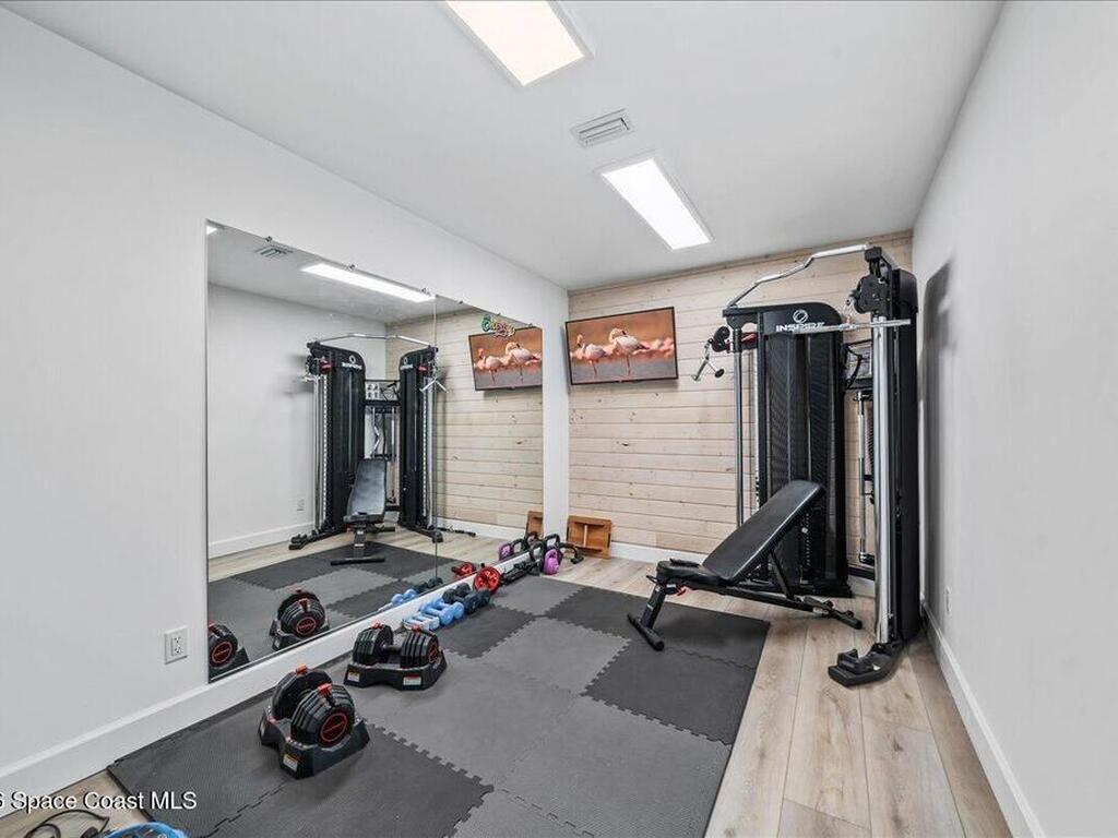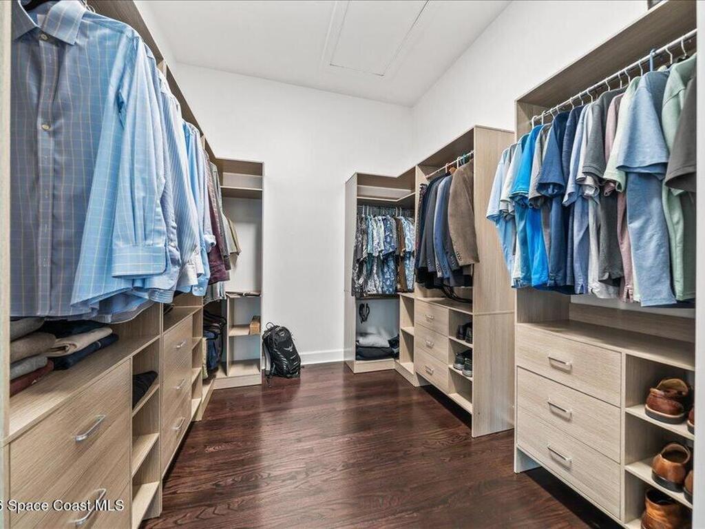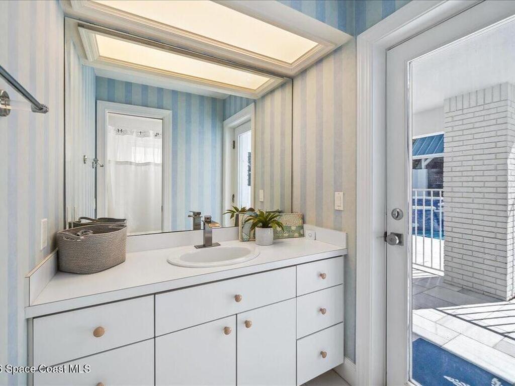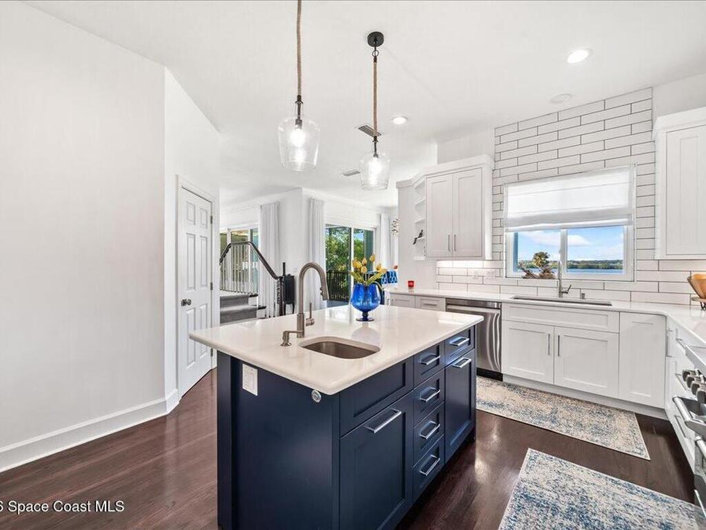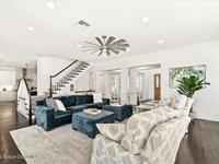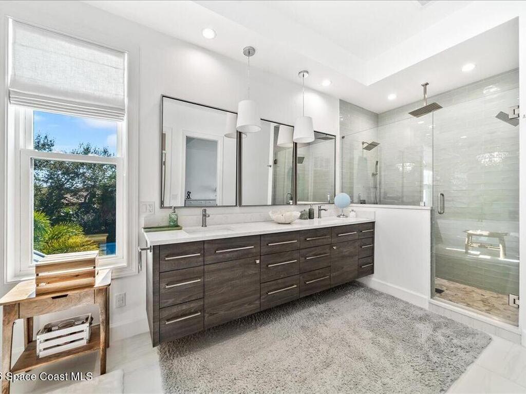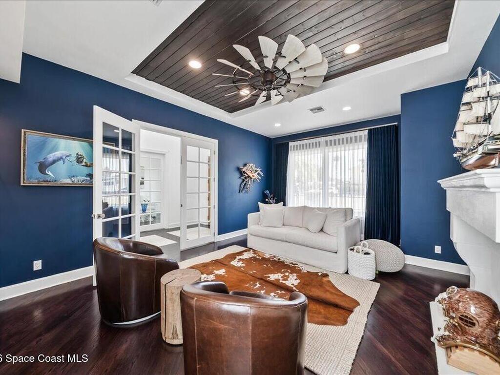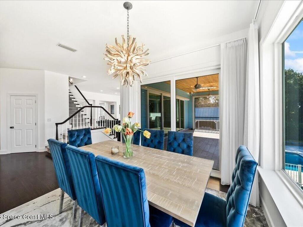 From the moment you step through the front door, you're greeted by sweeping, uninterrupted views of Honeymoon Lake, an immediate sense of arrival that sets the tone for the entire residence. Positioned along one of Brevard County's most coveted waterways, this singular waterfront estate is a study in quiet luxury and intentional design. Custom-stained oak hardwood floors, layered textures, and a gas fireplace create interiors that feel both polished and inviting, while the home's thoughtful layout draws the eye effortlessly toward the water beyond. Designed for seamless indoor-outdoor living, the exterior unfolds into a resort-style setting where a marble-framed pool, summer kitchen, and expansive pavered terraces invite long afternoons and elegant evenings. A powered dock with dual boat lifts provides direct access to the water, complemented by a Trex deck ideal for sunrise departures and sunset returns. Built with resilience and longevity in mind, the home features a metal roof,