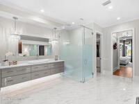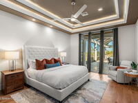 This custom-built lakefront estate delivers a rare balance of architectural confidence & resort-caliber living, where hardwood floors, soaring ceilings & expansive glass create a seamless dialogue between refined interiors & the water beyond. Designed for both grand entertaining & quiet retreat, the home unfolds through curated living spaces, a statement kitchen w/ concealed prep areas & a private primary wing featuring dual spa-inspired en-suites & his & hers boutique-level custom closets. Outside, a fully screened resort environment takes center stage w/ a heated saltwater pool, raised spa, fire features, sun shelf, outdoor kitchen & multiple covered lounge zones that transform every hour of the day into an experience. A separate guest casita, expansive garage spaces including an air-conditioned RV garage, whole-house generator & new RO system reinforce the home's thoughtful engineering, all set within the exclusive gated Adelaide that offers privacy, prestige & effortless access.