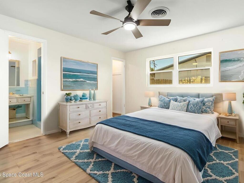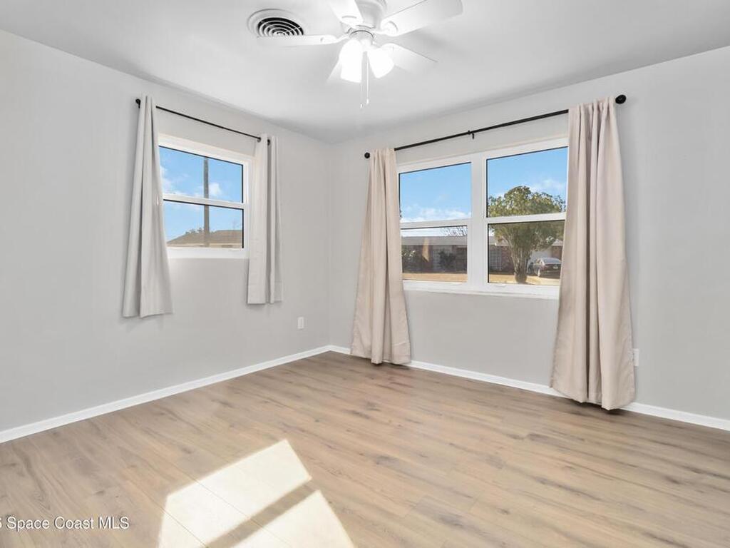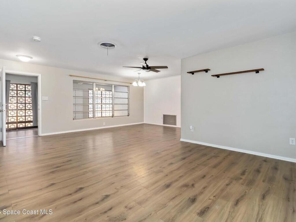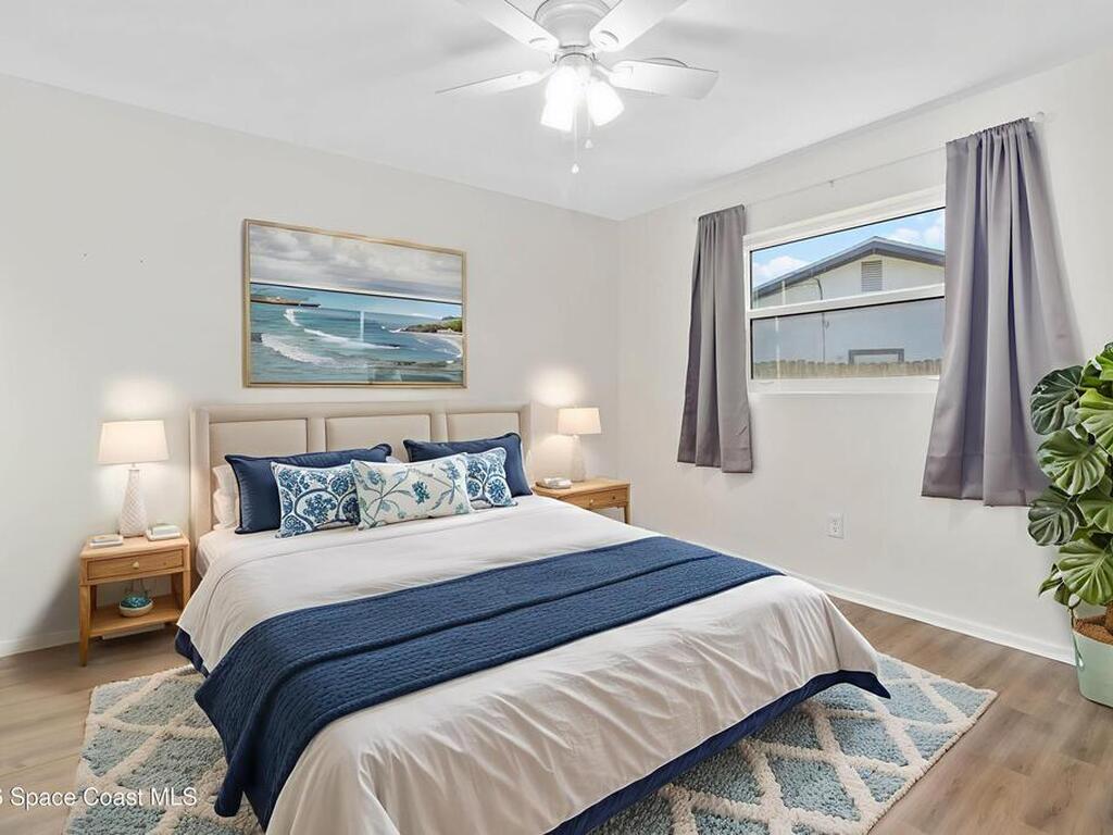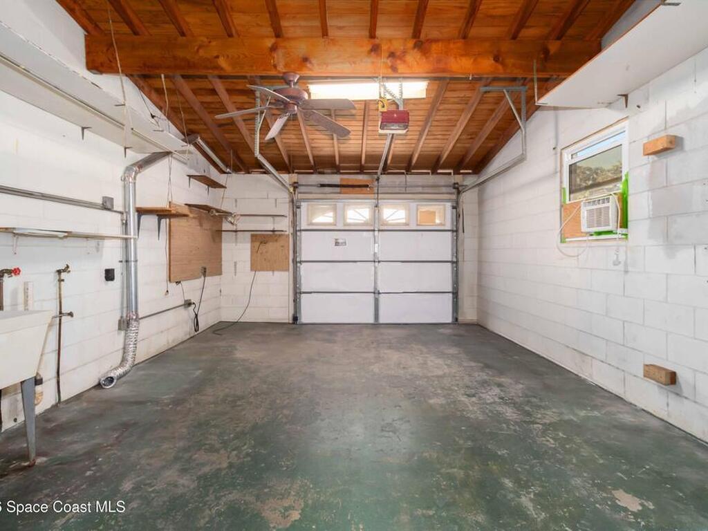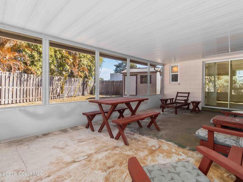 Corner-lot cutie with upgrades galore! This concrete block 3/2 is packed with cool features you'll lovea"new laminate floors, fresh paint, impact windows, and no popcorn ceilings. The oversized 1-car garage plus extra guest parking makes hosting easy, and it's wired for a whole-house generator for peace of mind. Sip cocktails on the large screened-in patio, catch rocket launches from your own backyard, and enjoy a yard with room for an RV or even a future pool. There's also a shed for all your lawn gear. Big-ticket items are already done: roof approx. 6 years, water heater 2023, HVAC 2016. Easy Florida living at its best!