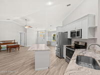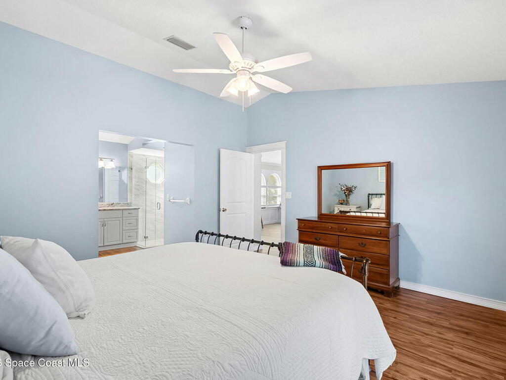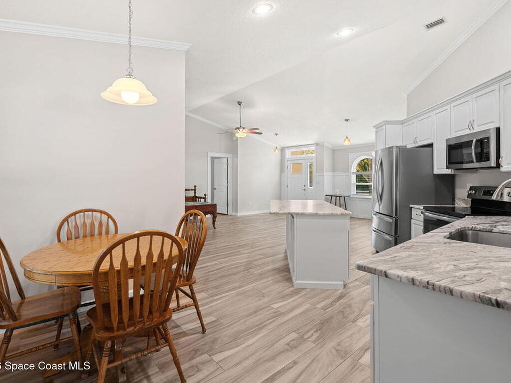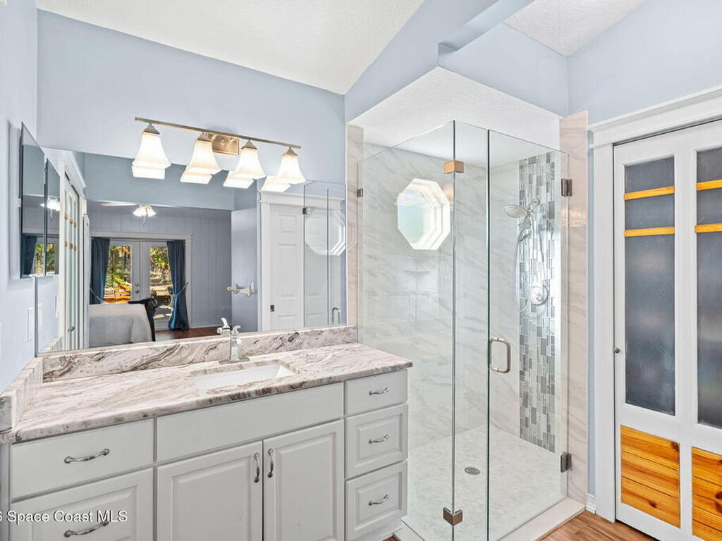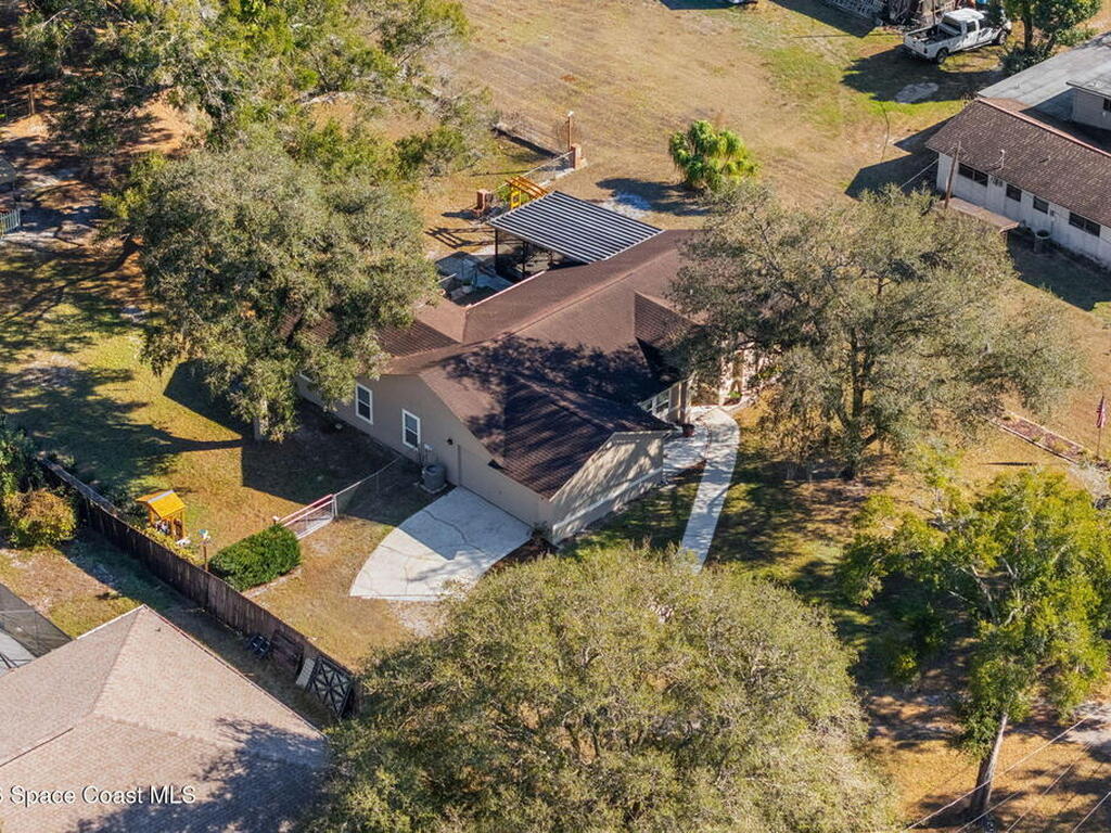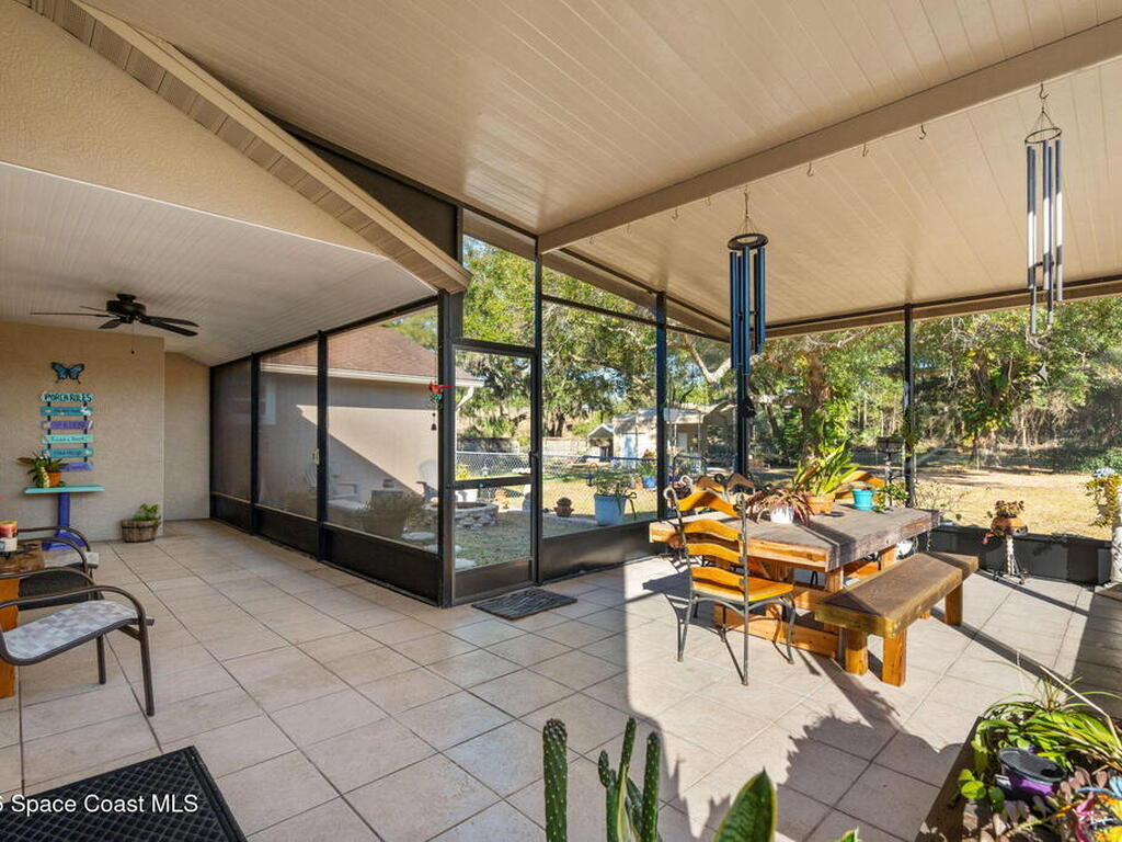 Completely renovated and set on a full acre, this 3-bedroom, 2-bath Cocoa home offers 1, 574 sq ft of bright, open-concept living with tile and LVP flooring throughout. Vaulted ceilings, impact windows and doors, and beautifully trimmed interior casings add a polished finish throughout. The spacious kitchen features stainless steel appliances, leathered granite countertops, generous prep space, and a large island perfect for gathering. The primary suite includes patio access and an updated ensuite with an extended vanity and glass-enclosed shower. Enjoy a sprawling screened patio overlooking an expansive backyard with room for a pool, firepit, detached storage structure, and even a pineapple patch. Quiet dead-end street with no HOA. Roof 2017, AC 2016, HWH 2026.