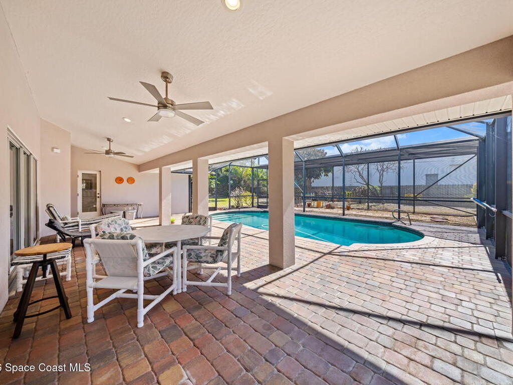 Welcome to beachside living at its best! This beautifully maintained 3-bedroom, 2-bath pool home is located just one block from the beach in desirable Indian Harbour Beach. Featuring an open floor plan with vaulted ceilings, tile and wood flooring throughout the main living areas and baths. The kitchen is equipped with stainless steel appliances and opens seamlessly to the living and dining spaces, ideal for everyday living and entertaining.Enjoy Florida outdoor living with a covered patio overlooking a screened pool with a connected screened area with a double layer sun- filtering screening to help minimize sun exposure for your garden or play area. The backyard is fully fenced with mature landscaping for added privacy. Located in the sought-after Martesia neighborhood with tennis courts, playground, jogging path, and quiet, beautifully maintained streets. Close to shopping, schools, dining, and all the best of beachside living.