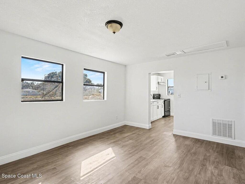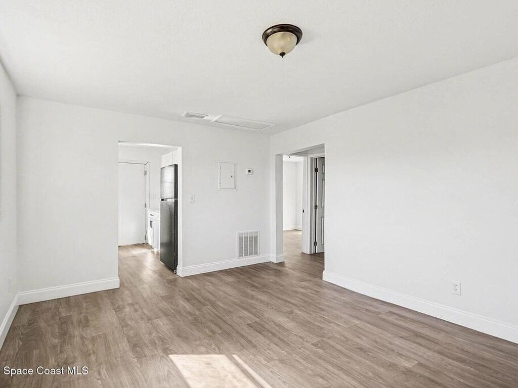 Check out this charming bungalow-style home just minutes from Cocoa Village. The .21‑acre lot features mature trees, a covered front porch perfect for morning coffee, and a covered carport. You're only 15 minutes from the beach and moments from Cocoa Riverfront Park.Inside, the home offers a bright kitchen and two comfortable living spaces. The bedrooms are spacious and include built‑in closet organizers. A modern bathroom and vinyl flooring throughout add to the home's appeal.