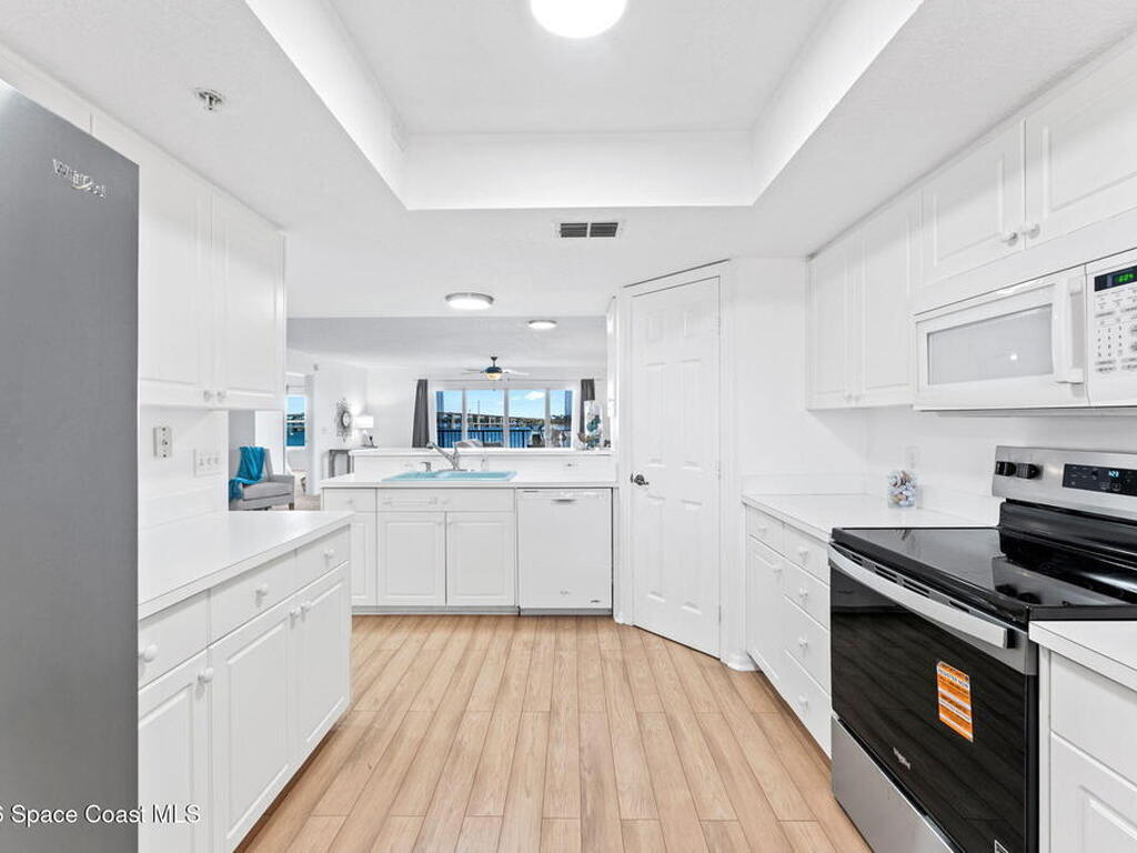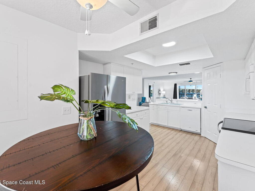 Waterfront living with a front-row seat to the Indian River. This is the kind of place people wish they found sooner. This 2-bedroom, 2-bath condo offers an easy, open floor plan with tile and carpet throughout, a cozy breakfast nook for morning coffee, and a smart split-bedroom layout that gives everyone their own space. Walk-in closets, a private single-car garage which is a rare bonus, accordion storm shutters, and peaceful river views set the tone for relaxed coastal living. A smart thermostat adds modern comfort and efficiency.Located in a charming historic area, this condo community delivers more than just a great place to live. Enjoy an impressive lineup of amenities along with an active social committee that keeps the calendar full of events and gatherings. Just a ten-minute walk to historic Cocoa Village, you can enjoy waterfront sunrises, river breezes, local shops, dining, and neighbors who quickly feel like friends.