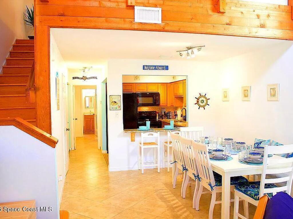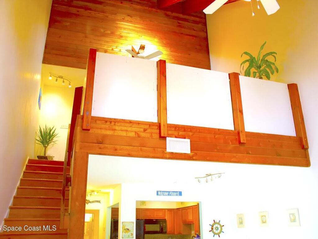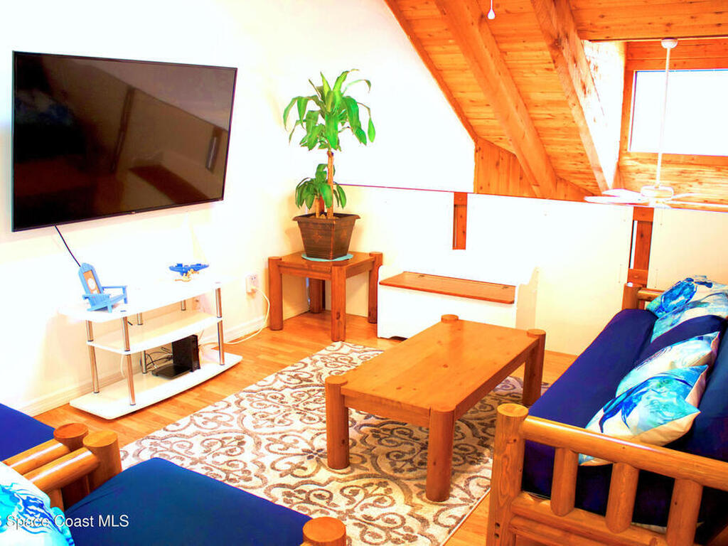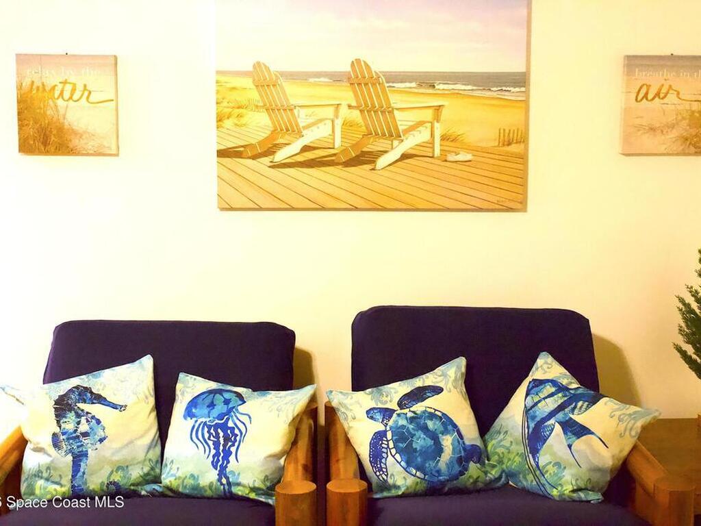 AMAZING DEAL! ALL INCLUSIVE HOME:~BEACHSIDE FURNISHED TOWNHOME! ~NEWER ROOF! ~NEWER HURRICANE-RATED GLASS! ~NEWER HVAC, WATER HEATER, APPLIANCES!~MARBLE COUNTER TOPS!~FIREPLACE!~NO HOA!~SLEEPS 10: ~2 MASTER BEDROOMS: 1 KING BED, 2 QUEEN BEDS! ~LOFT: 2 FULL-SIZE FUTONS, 2 HALF-SIZE FUTONS!~FLAT SCREEN TVs in EVERY ROOM!~READY to LIVE IN or TURN-KEY RENTAL (Airbnb, etc)!One of a kind, hidden treasure with beautiful woodwork found nestled just a few blocks from beach and park. Cozy and inviting interior with impressive, wood-laden, vaulted ceiling that must be experienced in person to fully appreciate. Conveniently located beachside of A1A, so there's no busy highway between you and ocean bliss. Close to cruise ships, NASA/Kennedy Space Center, Cocoa Beach Pier, top schools, restaurants, fun activities and more! INCLUDED: All Furnishings & Appliances. 2 Parking Spaces+. Private Backyard. Home is Ready to Go and 5-Star Rated on Airbnb! Won't Last!