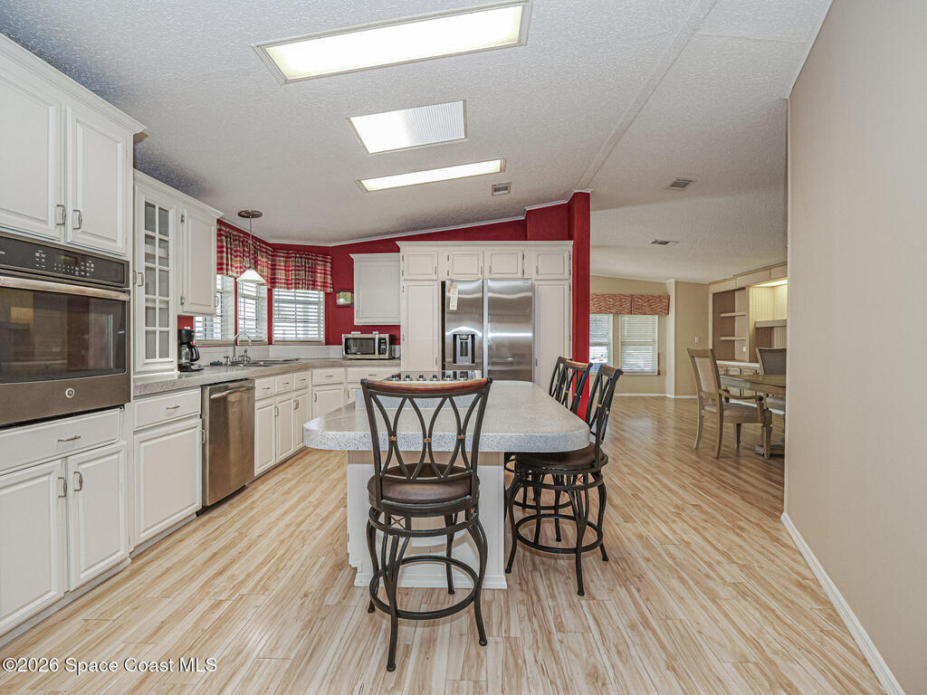 Well-maintained 2BR/2BA home with 1, 466 sq ft under air featuring a handicap-accessible ramp and bright open layout connecting living, dining, and kitchen areas. The kitchen offers a large island with cooktop and seating for four, plus ample cabinetry and counter space. The primary suite showcases double-door entry and an en-suite bath with his-and-hers sinks, soaking tub, and separate shower. Guest bedroom and second full bath provide comfort for visitors. Metal roof, newer windows, and all new plumbing add peace of mind. Indoor laundry, great storage, and a functional floor plan make this home ideal for full-time living, seasonal use, or investment. Move-in ready and easy to show!