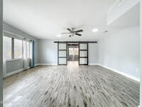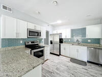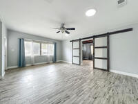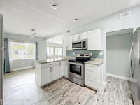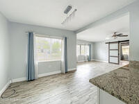 This 3-bedroom, 2-bathroom home features approximately 1, 822 sq. ft. of living space and sits on an expansive lot with mature landscaping. The interior showcases durable Luxury Vinyl Plank flooring throughout the main living areas and cozy carpeting in the bedrooms. The kitchen is equipped with shaker-style cabinetry, granite countertops, a teal subway tile backsplash, and stainless steel appliances. The open-concept living room includes frosted glass barn doors that open into a bright sunroom, providing a flexible space for a home office or playroom. Functional additions include a separate laundry and workshop area, and a double carport. The large backyard serves as a private retreat with fruit trees, a detached storage shed, and a spacious patio featuring an outdoor sink. With a spacious design and plenty of room to enjoy the outdoors, this property presents an inviting opportunity for Florida living. No HOA and with great potential for short-term rentals. Schedule a showing now!