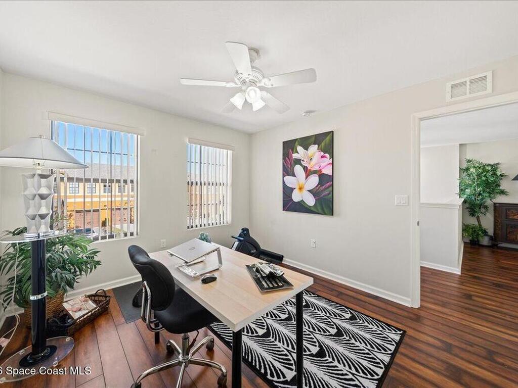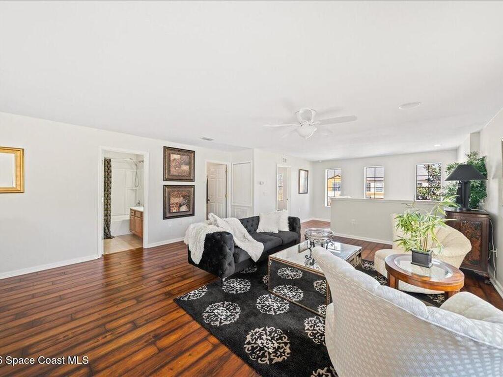 Ready for your 'right-size'' home. This immaculate, 1, 975 sq. ft. end-unit townhome offers the perfect blend of single-story convenience with two-story space. The heart of this home is the spacious Ground Floor Master Suite, allowing you to age in place comfortably without sacrificing privacy. The open, airy floor plan features soaring 2-story ceilings, neutral tile, and a private screened porch perfect for your morning coffee. The kitchen is ready for entertaining with 42'' cabinets, granite counters and a breakfast bar. Upstairs, you'll find a beautiful Java Teak staircase leading to a massive loft-style living area. It is the ideal ''Flex Space''--use it as a second TV room, a grand-kids' play zone, or a dedicated home office. Two additional bedrooms and a full bath create a private retreat for visitors, so you stay downstairs while they have their own space up top! Stop worrying about bills and maintenance! The $452/mo HOA fee is a powerhouse of value.