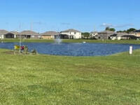 Lakeside Palms, where kids play & families celebrate Holidays with their Neighbors. Freshly painted this Open floorplan 4/2/2 isn't just Large and Beautiful, it has a Beautiful Sunset and WATER View, This Home has an ASSUMABLE VA MORT AT 2.25% and You Do Not Need to be a Vet to Assume! Just like New with ALL NEW Kitchen and Laundry appliances & is within the Builder 10 Year assumable Warranty.The Kitchen includes 36'' cabinets, All Brand NEW APPLIANCES including: Stove with Convection Oven. Microwave; &Refrigerator &Dishwasher, &Washer & DryerADD to that a Large Kitchen Island with Room for Seating that overlooks the Dining Area and Living Room, creating an Open concept Living space. This amazing Home also has a LARGE Owner's Primary Suite with LARGE Walk in Shower and a double vanity, LARGE walk-in closet and a linen closet. ceramic tile flooring in all common living areas.