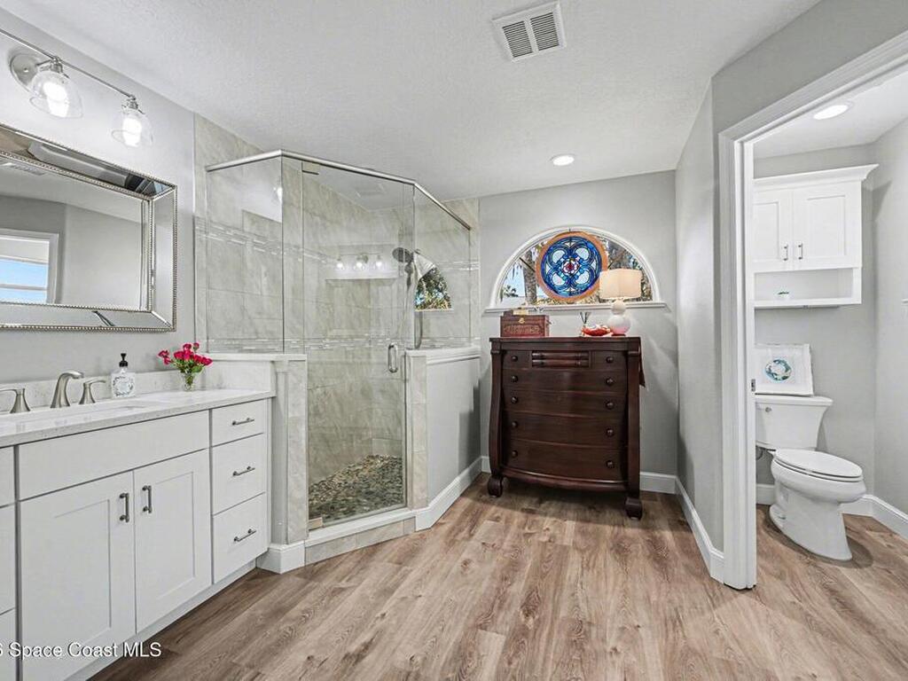 Look no further if you are wanting to live in a golfing community on the 15th Hole with a low HOA fee, surrounded by nature and Florida's wildlife. This home was COMPLETELY and lovingly renovated and updated from 2021 - 2025, including some outdoor features- brand new exterior paint, pool screen area and pool pump, resurfaced pool deck, and aluminum fence. Tastefully remodeled to include a gourmet style kitchen with ample room for all of your cooking and kitchenware supplies, appliances, all three bathrooms, interior paint and ceilings, flooring, fireplace mantel with quartz facing, quartz countertops throughout, & French doors. Whole house Generac Guardian 16kW generator with 200 amp transfer switch. The Space Coast Golf Club is close by offering 18 holes of golf, a bar and grille and golf shop - also open to the public. This community is close to international airports, Kennedy Space Center, numerous parks including Kars Park, Mitchell Ellington Park and Brevard beaches.