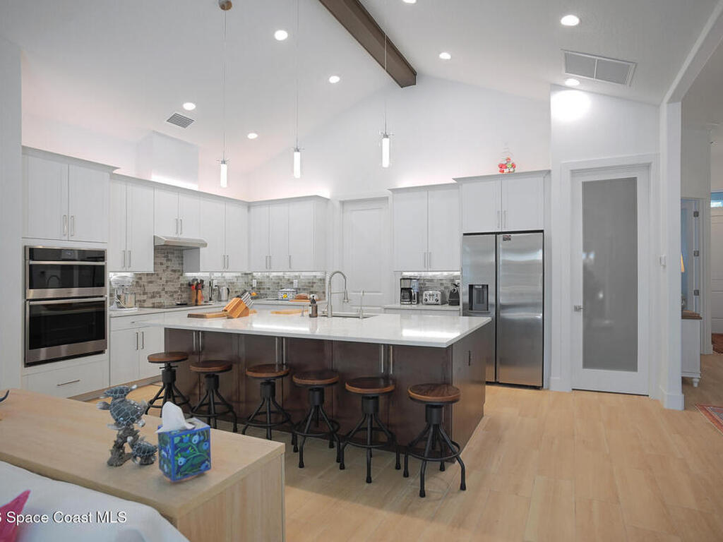 Fall in love with this 2024 newly built Lifestyle home that is designed for effortless luxury. Quality built with concrete block and shows like brand new build. This five-bedroom, three-bath residence boasts continuous tile flooring, vaulted ceilings, quartz countertops grace every surface, huge walk in pantry in kitchen, automated pool system and lighting and so much more! Open concept great room has high ceiling and lots of natural lighting. Huge dining space plus living room all open to gourmet kitchen with giant center island, S/S appliances and induction cook top. High-end wall microwave oven combo, recessed lighting, and counter-height bar seating elevate daily living. Outdoors enjoy a giant, impressive screened in pavered lanai with heated pool and spa. Pool is perfect length for swimming laps. Big fenced in yard to play in has shed for extra storage. Huge 3 car garage with epoxy flooring. Driveway is pavered and has front porch to relax. Close, easy beach access w/clubhouse.