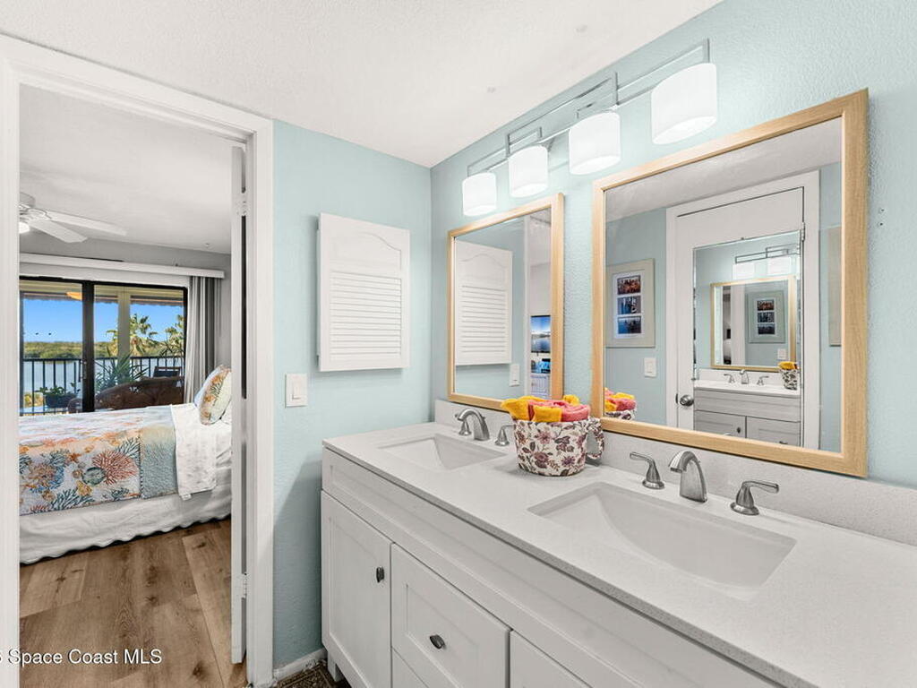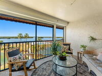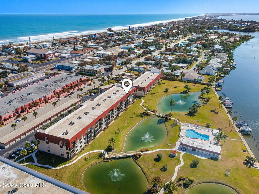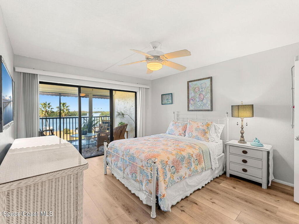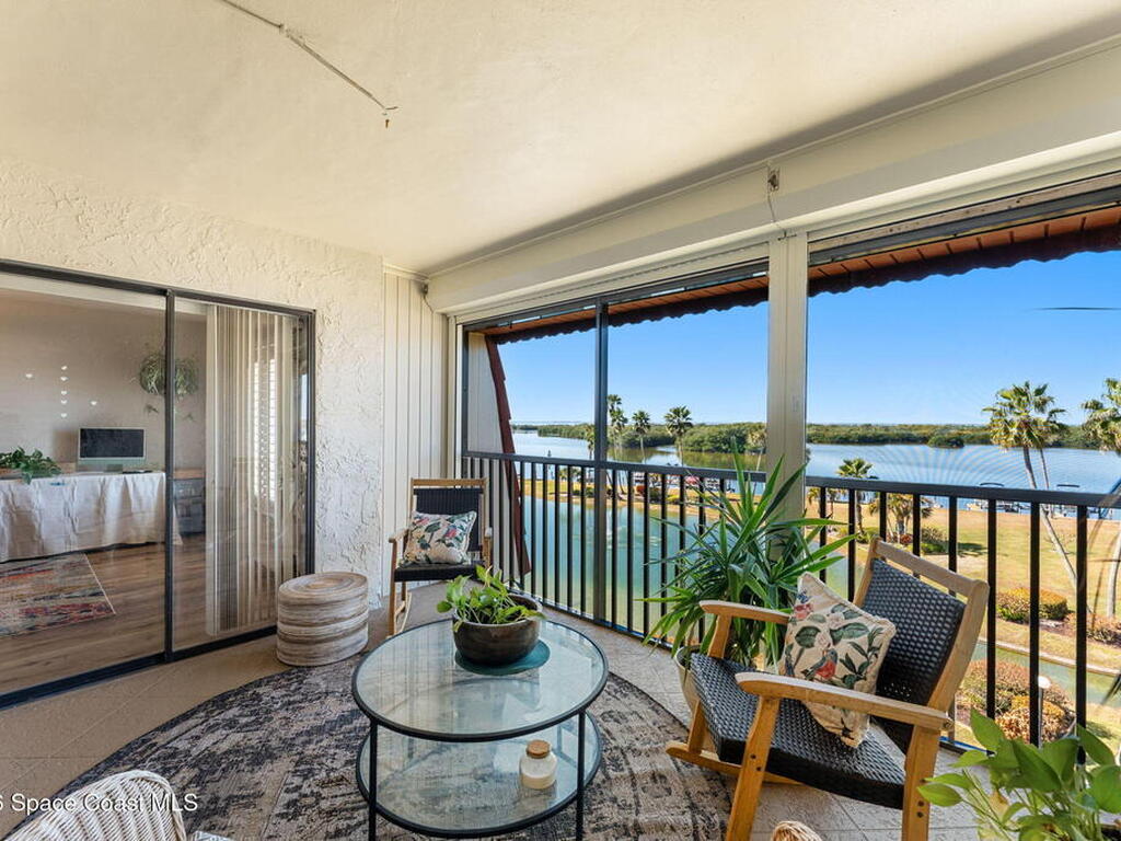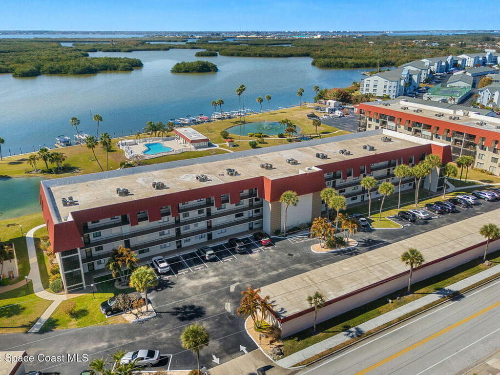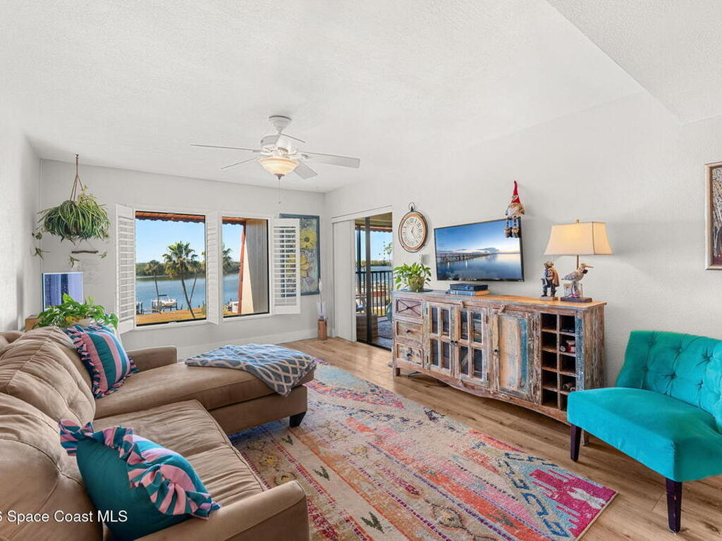 Wake up to sweeping lake and Banana River views from this top-floor 2 bedroom, 2 bathroom residence in the River Lakes riverfront community. Bright, breezy, and thoughtfully updated, this home features a beautifully renovated kitchen with quartz counters, refreshed baths, newer laminate flooring in the living spaces, and an open layout that captures the scenery from multiple rooms. A versatile bonus room provides space for a home office, second living area, or comfortable guest retreat. The primary suite opens to a screened balcony where you can relax while watching spectacular sunsets, dolphins, and manatees swimming in the water. Newer electric hurricane shutters, plantation shutters, and an HVAC system less than a year old offer comfort and peace of mind. A private garage adds convenience, and boat slips may be available for purchase or rent. Residents enjoy a scenic 725-foot river walk and a true Florida waterfront lifestyle just a short two-block walk to the ocean.