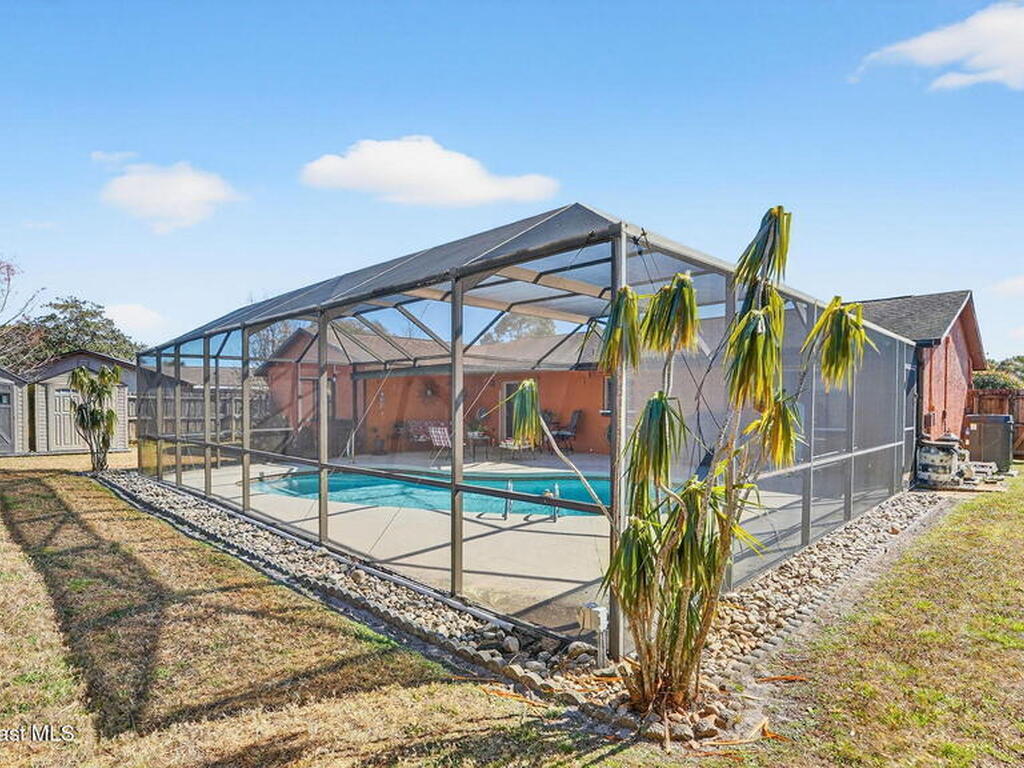 There's No Place Like Home! And this home let's you live the Space Coast lifestyle comfortably with major convenience! Inside, you'll find easy-care laminate flooring throughout the main living areas with carpeted bedrooms and an updated hall bathroom for a fresh, modern feel. Outside is your screened-in pool and fully fenced backyard--perfect for entertaining, relaxing, or soaking up Florida sunshine year-round. Two storage sheds add extra functionality for tools, toys, or hobbies. Big-ticket updates were completed in 2019, including the roof, HVAC, and water heater, providing peace of mind. Washer and dryer were replaced in 2025 and are conveniently located in the garage. Centrally located near shopping, dining, and major employers, this home is also in close proximity to the upcoming Brightline station--making future commuting and travel even easier. This home delivers location, upgrades, and lifestyle in one powerful package at an affordable price. And no HOA!