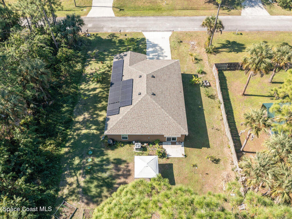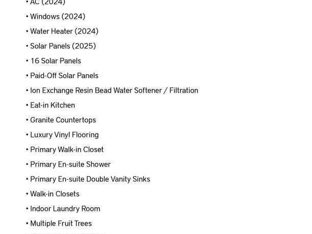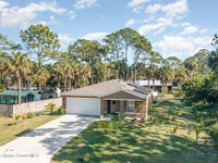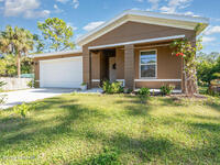 Practically brand new 3 bed / 2 bath built in 2024 with transferable builder warranty. This one has it all - open floor plan, water filtration system, fruit trees and paid off solar panels! The kitchen boasts granite countertops, white shaker cabinets, stainless steel appliances, and bar seating. The primary ensuite offers a double vanity with granite countertops and walk-in closet. Additional bedrooms offer maximum storage with walk-in closets. Vinyl plank in main living areas. Indoor laundry room. Gardener's paradise with citrus, grape, cherry, pineapple, fig, bananas, mango, avocado, lettuce beds, elderberry, basil and so much more! Minutes away from major shopping centers, restaurants, parks, and quick access to I95.