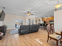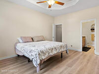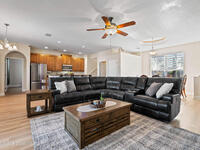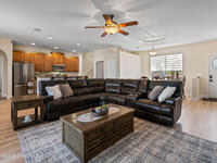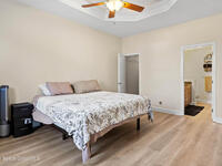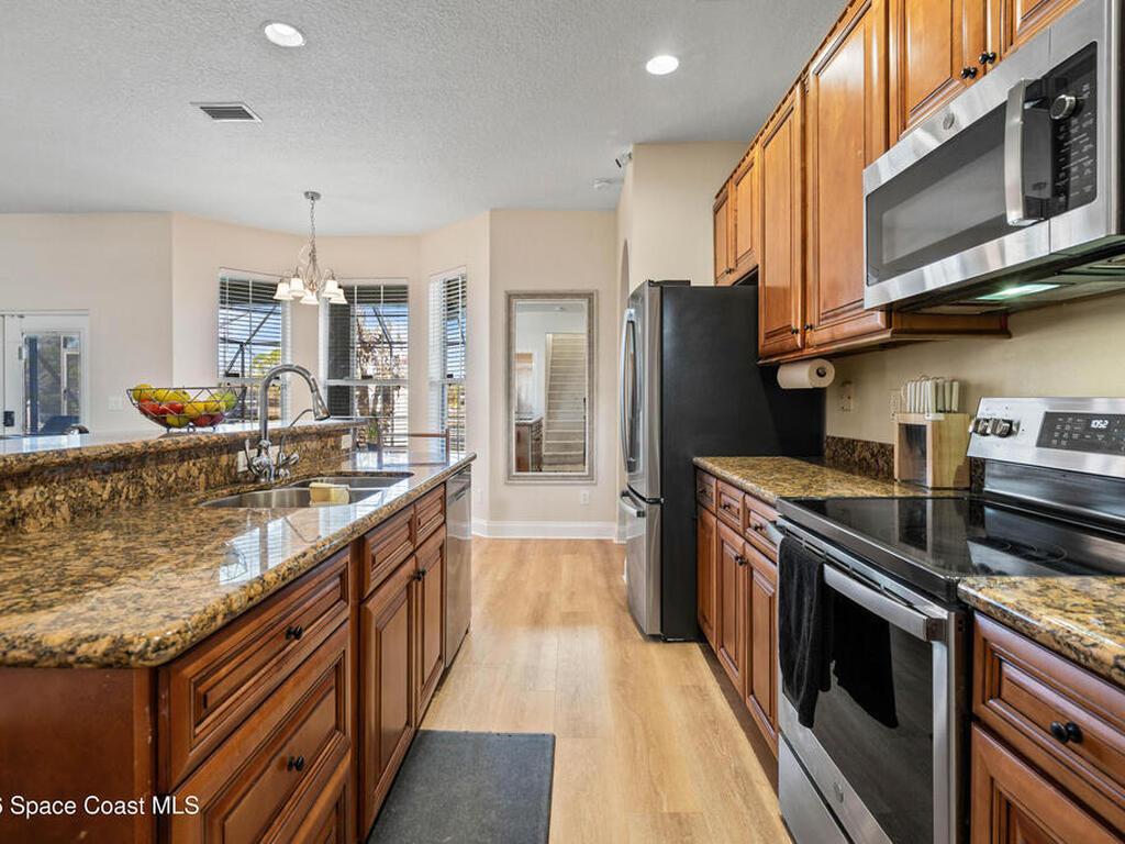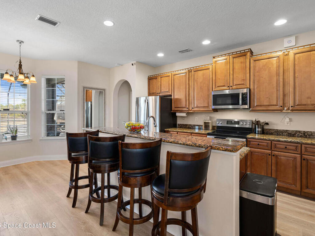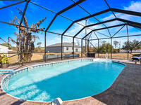 Custom Built and Absolutely Stunning pool home on a corner double lot .52 acre with city water! This immaculate 3-bedroom, 2.5-bath home features a spacious flex/bonus room upstairs with a wet bar, making it a true entertainer's dream. The gourmet kitchen boasts -new stainless steel appliances (2023), granite countertops, and 42'' maple cabinets. The first-floor primary suite showcases a tray ceiling with LED lighting, while elegant details throughout include 5'' baseboards, knockdown ceilings, rounded corners, and tray ceilings in both the dining room and primary bedroom. Upstairs, enjoy a 16x23 game room with wet bar and half bath, plus an incredible home theater complete with projector, screen, and tiered seating. Step outside to a screened-in pool, perfect for relaxing or hosting guests. This smart home is wired for a Ring security system and includes a backyard storage shed. Major updates provide peace of mind include: