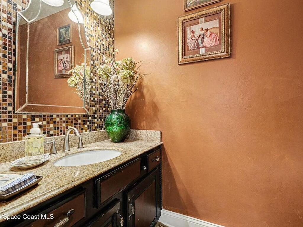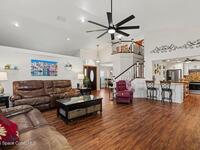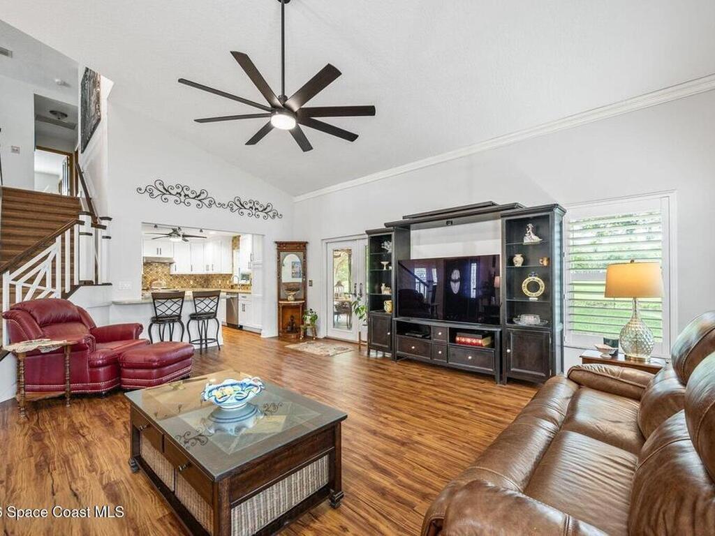 Discover the perfect blend of comfort, style, and charm in this spacious 2, 700 sq ft home in the sought-after Watermill Estates on Merritt Island. This beautifully maintained residence offers 4 bedrooms, a versatile loft that can serve as a 5th bedroom, and 2.5 baths. Inside, enjoy a light-filled layout with a 1st floor primary suite, an upgraded kitchen featuring white shaker cabinets, premium quartzite countertops, stainless-steel appliances, and sleek laminate flooring. Solid wood interior doors, plantation shutters, Impact-rated windows, new Roof in 2022, new A/C in 2025 and the exterior was just painted which adds quality and peace of mind for the new owners. Step outside to a large screen enclosed covered porch & a sparkling 16' x 31' saltwater pool offering serene lakeside views--perfect for sunsets, relaxing, and entertaining. Thoughtfully updated and ideally located, this home offers privacy & modern comfort.