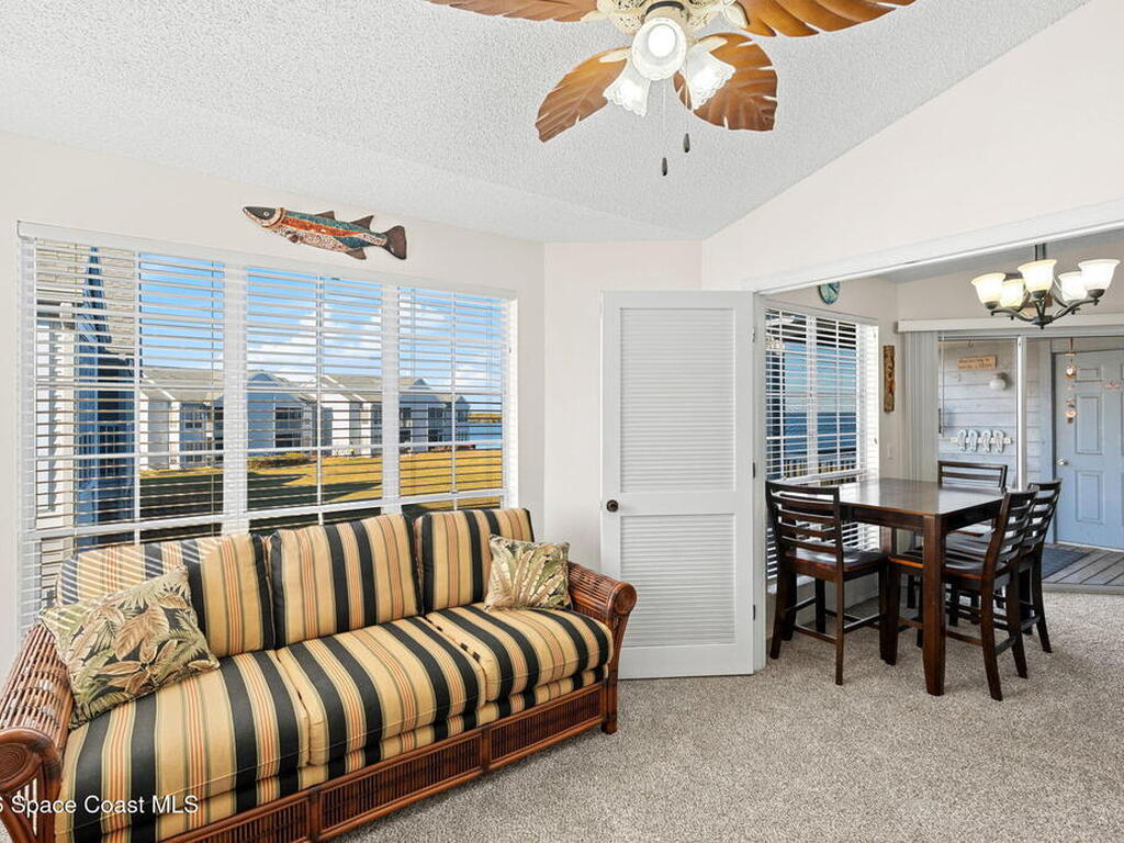 One of the best values on the Indian River! Furniture is optional! This condo is positioned directly on the river with wide, unobstructed water views from the kitchen and dining areas, plus front-row seats to rocket launches and regular dolphin and manatee sightings. The view and move in ready condition set this unit apart.Inside, the condo is in solid condition with meaningful updates already completed, including a remodeled kitchen (2020), LVP flooring in the kitchen and baths (2024), new carpet in the main living areas (2024), updated paint and ceiling fans, a new AC and air handler (2025) and washer/dryer (2020).Located just minutes from the beach with Publix and Walgreens directly across the street and convenient access to Kennedy Space Center and both Orlando and Sanford airports.Sunrise Landing offers true riverfront living with pools, fishing piers, hot tubs, saunas, clubhouses, tennis and shuffleboard courts, water access, BBQ areas & a vehicle wash station!