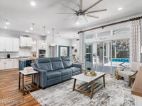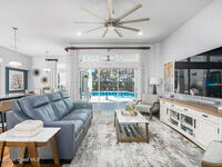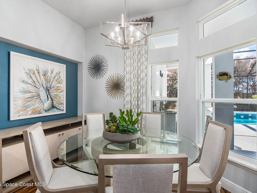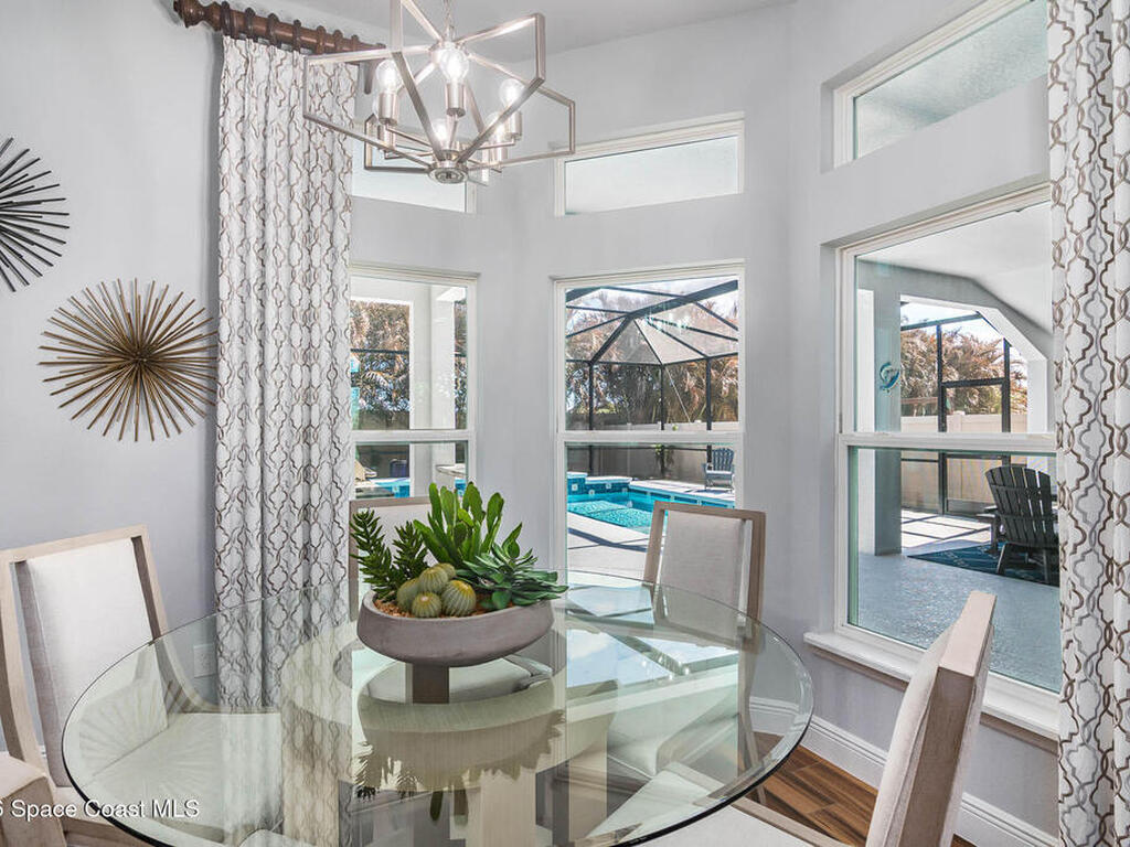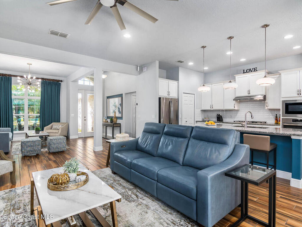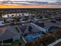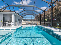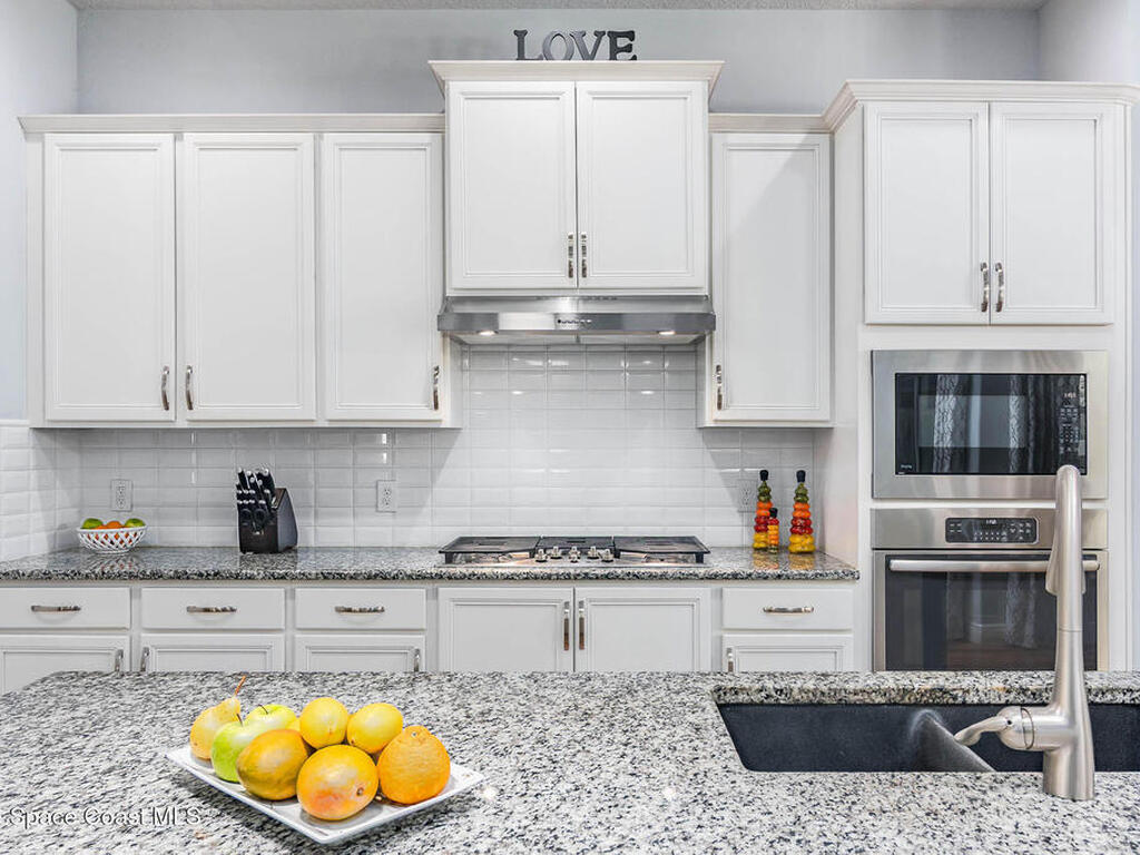 Immaculate home just 9 min. from the beach, close to shops, restaurants, grocery stores & A-rated schools. Designed for comfort & entertaining, this open-plan home features an exceptional outdoor living space with a summer kitchen, including a grill & gas burners, plus a gorgeous swimming pool with a waterfall & shallow entry, ideal for kids or in-pool seating. Fully fenced yard w/ two gates & outdoor TV. Inside, enjoy high ceilings & wood-look tile throughout, paired w/ white cabinets & granite counters. The kitchen is a standout w/ SS appliances, wall microwave & oven, vent hood, supersized island & casual dining area overlooking the large lanai. Additional upgrades include extended driveway, epoxy-painted garage, cabinets in the laundry room, tankless gas water heater, AC w/ UV light & overflow safety system, security camera system & solar panels to be paid in full at closing. Owner averages only $50/month electric bill. Loaded w/ upgrades & thoughtfully designed for Florida living