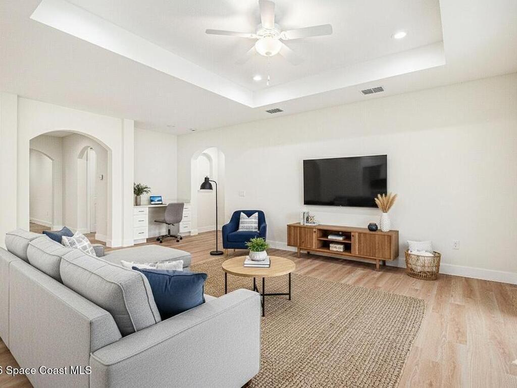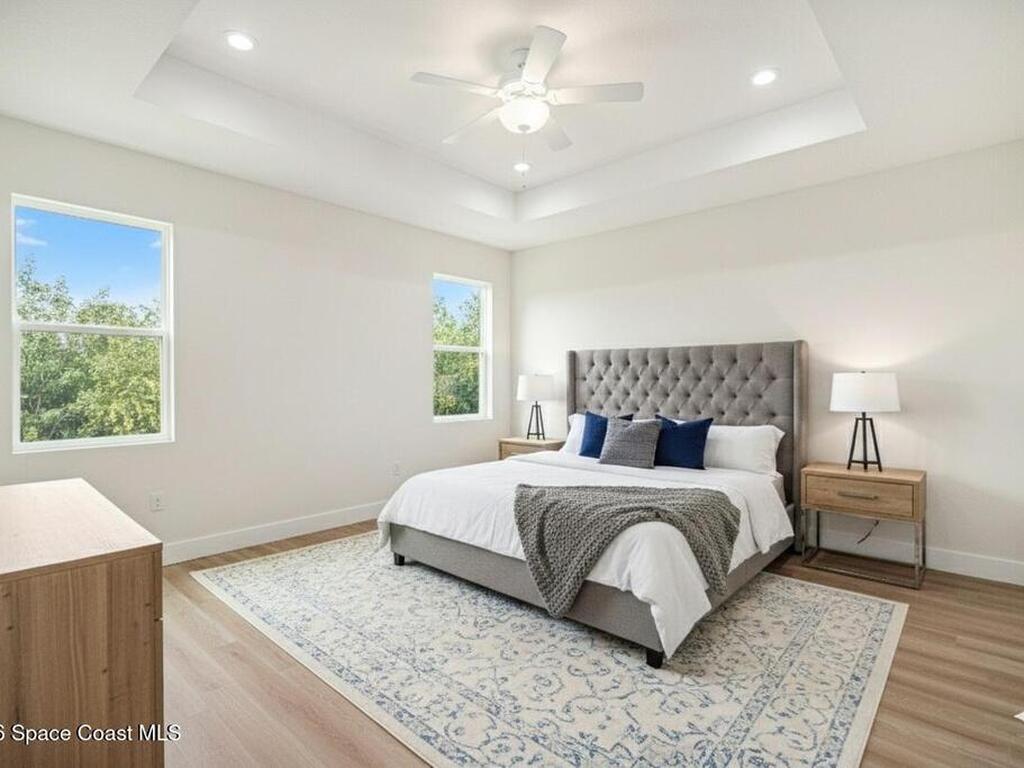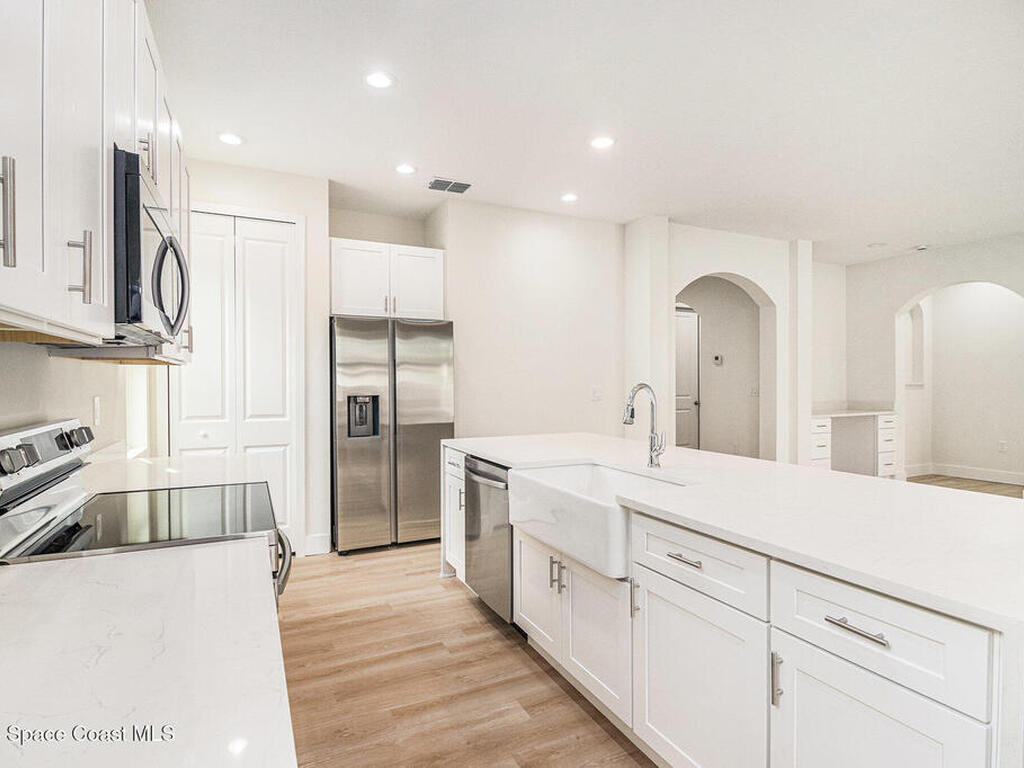 MOVE-IN READY | LOW INTEREST RATE LOANS AVAILABLE Experience refined Florida living in this exquisitely built 4-bedroom, 2.5-bath new construction home in the heart of Palm Bay. The interior boasts an airy, open-concept floor plan illuminated by natural light. At its heart is a Chef's Kitchen featuring solid wood soft-close cabinetry, sleek quartz countertops, and stainless steel appliances. No detail has been spared, with premium upgrades included as standard:Architectural Elegance: 9'4'' ceilings paired with striking 8-foot doors.Premium Finishes: Luxury vinyl plank flooring and custom-tiled showers.Modern Comfort: Contemporary layouts designed for seamless entertaining.