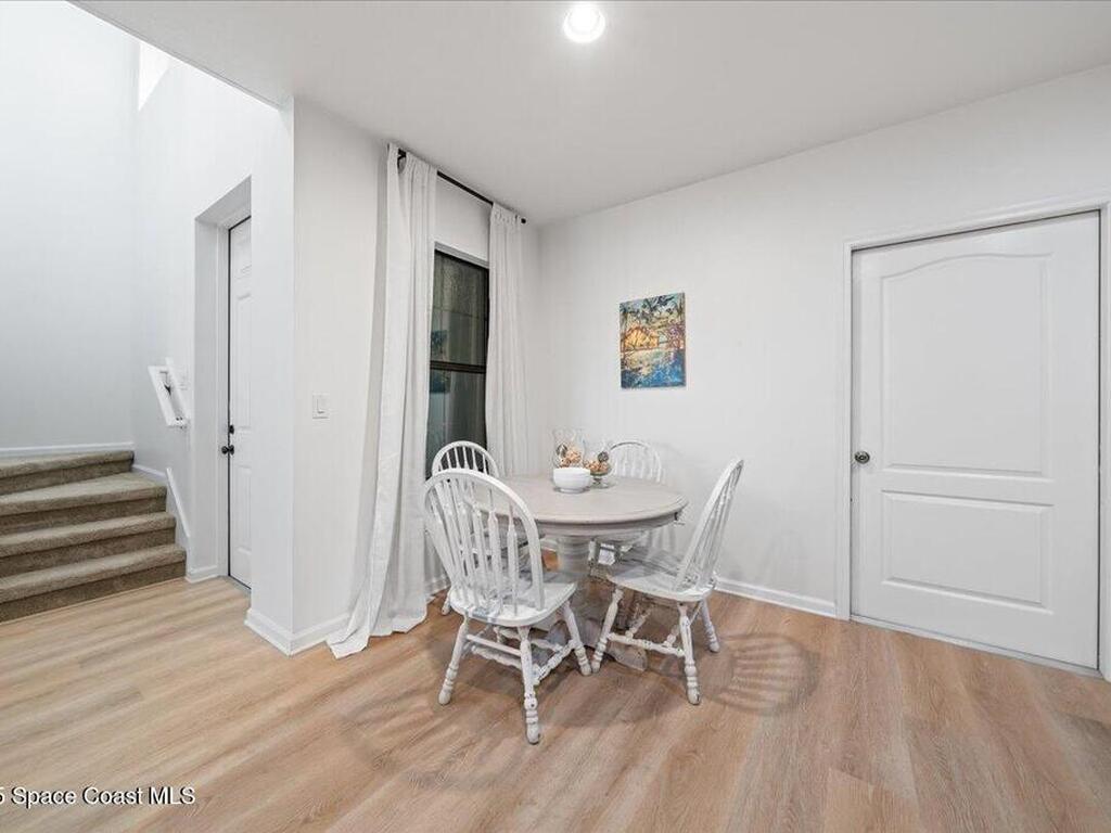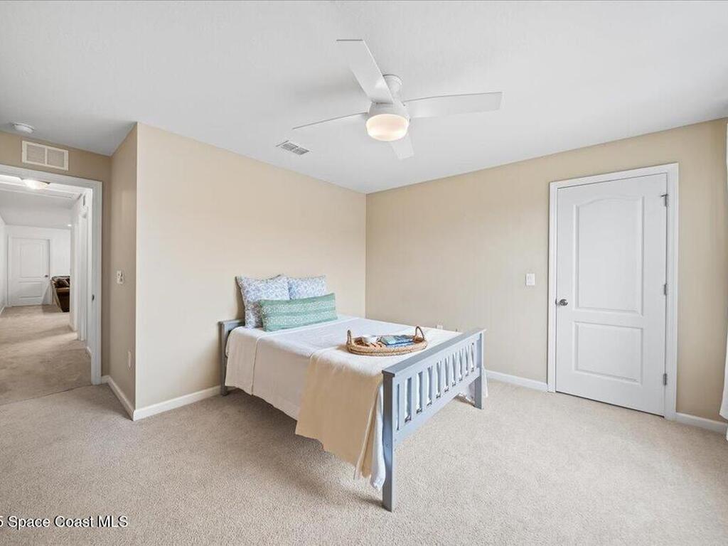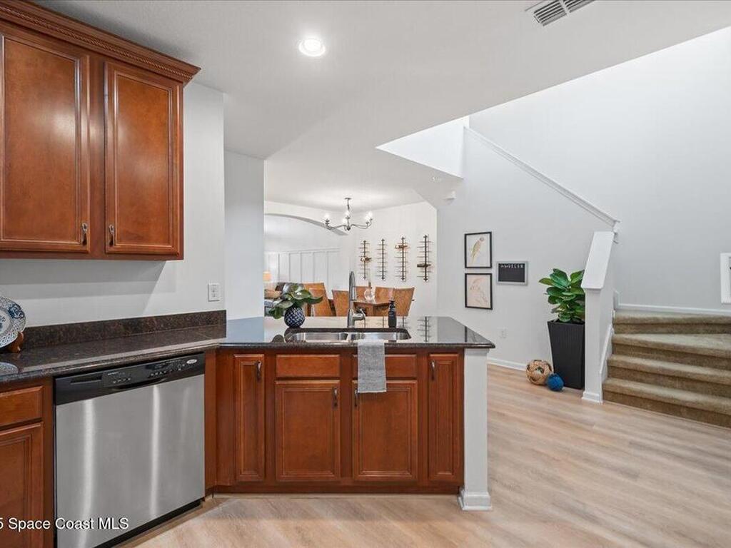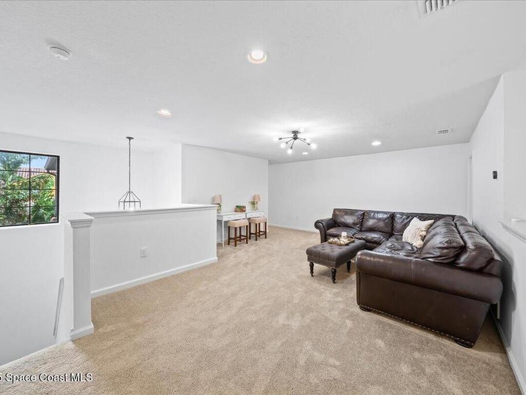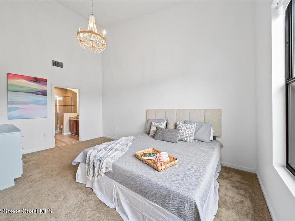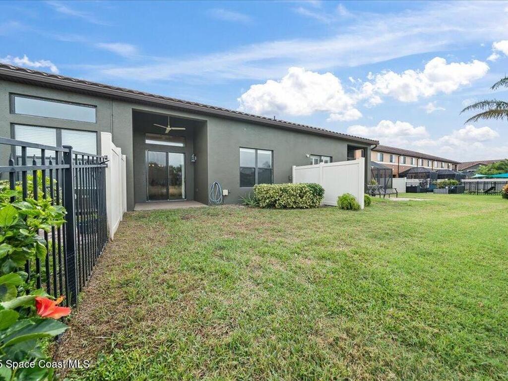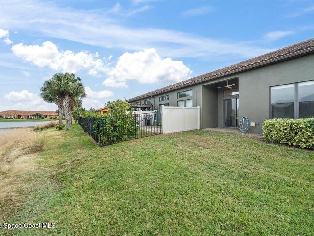 This spacious 2-story townhouse in the sought-after Montecito community features 3 bedrooms, 2.5 baths, with the primary bedroom on the FIRST floor. The open-concept kitchen boasts granite countertops, stainless steel appliances, and a breakfast bar, seamlessly flowing into the bright living area with abundant natural light. The primary bedroom includes an en-suite bath for added privacy. Upstairs, a versatile loft can be used as an office, playroom, or media room. The two secondary bedrooms are generously sized with walk-in closets. Enjoy the peaceful private courtyard with lake views, perfect for relaxing. Located within walking distance to the beach, and with easy access to shops, restaurants, schools, and Pineda Causeway, commuting to I-95 is a breeze.