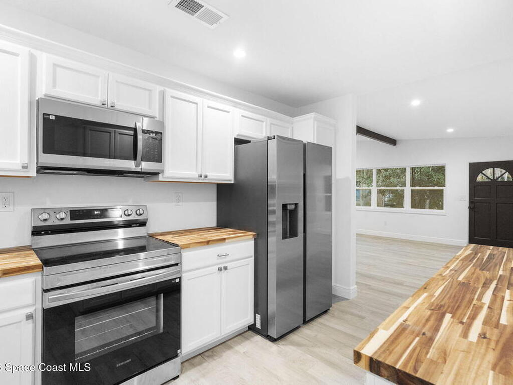 UPDATED and move-in ready with $75K invested in interior renovations and improvements. This 3-bedroom + Bonus/4th Bedroom, 2-bath home sits on a fully fenced 0.34-acre lot and includes additional finished flex space featuring private exterior access from the rear of the property, additional access via the carport, and its own fully renovated bathroom, ideal for guests, extended living, home office, or flexible use. The renovated kitchen features new cabinetry, butcher block countertops, brand new Samsung stainless steel dishwasher, refrigerator, stove and microwave, double stainless-steel sink, disposal, added outlets and new lighting. Additional interior improvements include luxury vinyl plank flooring throughout, full interior repaint, new baseboards, updated electrical outlets and switches, new ceilings in the living room and kitchen, and new windows and sills. Both bathrooms have been updated including a fully renovated bathroom within the flex