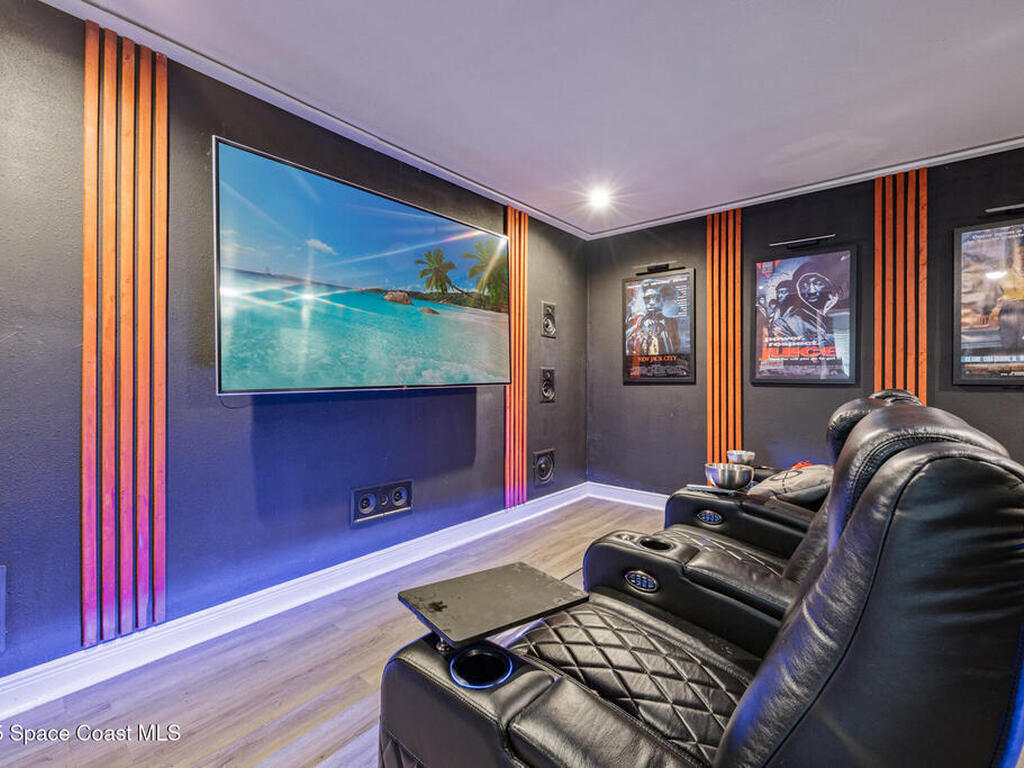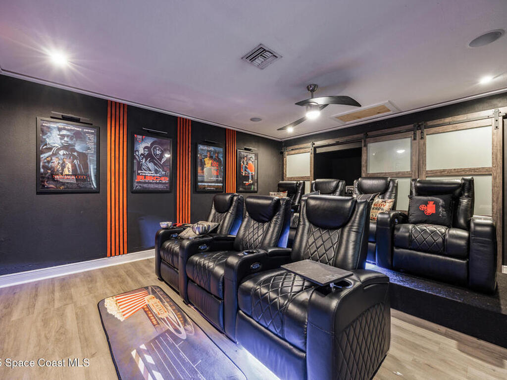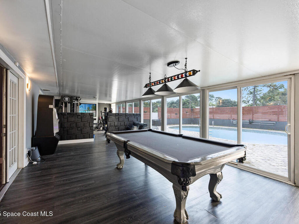 Spacious 3 Bedroom 2 Bath Centrally Located Palm Bay POOL Home on a Corner Lot! Vaulted Ceilings and Beautifully Updated Master Bedroom and Master Bath with Granite counter tops. Garage has been converted to a home theater and game room. Fenced back yard. Large Screened-in Pool and Entertaining Area with Outdoor Fireplace makes this the Perfect Home for Summertime Family Fun! Fine Florida Living Awaits!!