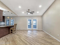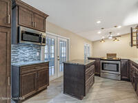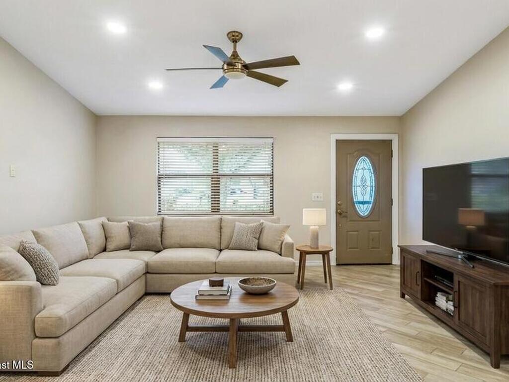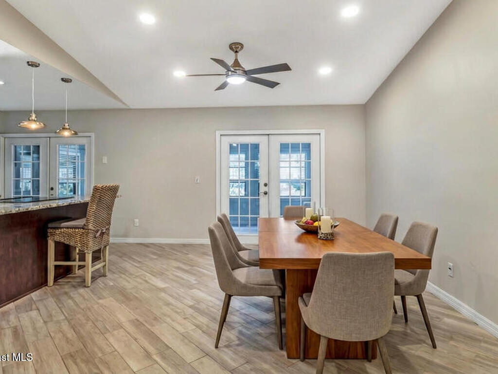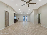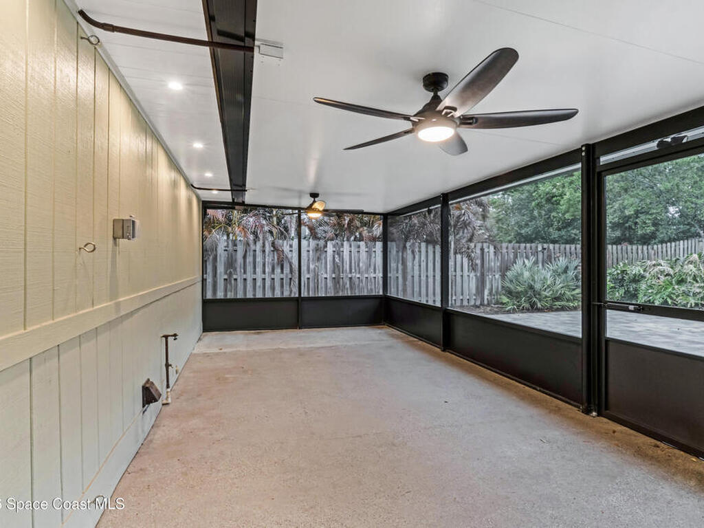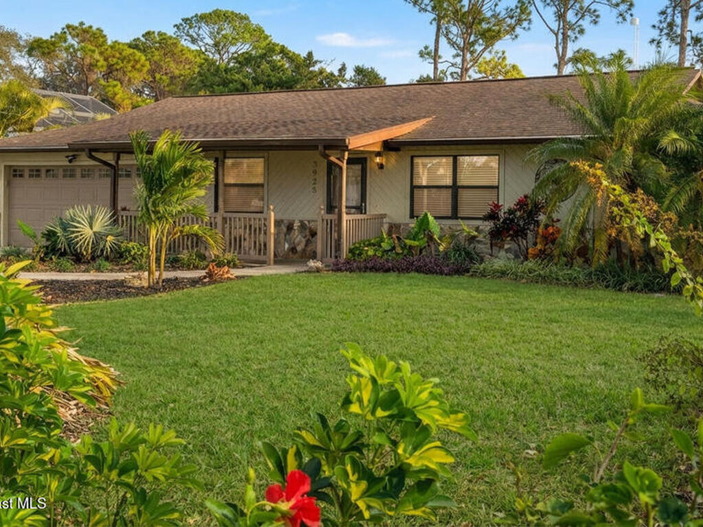 DREAM HOME on the SPACE COAST. This stunning 3 Bed, 2 Bath, oversized 2 Car Garage with workshop offers the perfect blend of comfort, style & functionality. Nestled in a quiet neighborhood with easy access to all the Space Coast has to offer. This property is designed for modern living and relaxation.Featuring diagonal ceramic wood plank-style flooring and plush carpeting.The interior exudes warmth & sophistication. The Custom kitchen is equipped with granite countertops, premium finishes, & ample storage making it ideal for both everyday use and entertaining. Updated Primary Bedroom and both bathrooms. A/C System ensures peace of mind & energy efficiency. With a Spacious open Living & Dining rooms .Step out through the French doors to your family room which leads out to a new screened in patio. Walk out to a newly paver stoned area and tropical landscaped backyard. Room for all your outdoor dreams. The property is completely fenced in for your comfort. SPACE COAST LIVING at its BEST