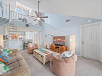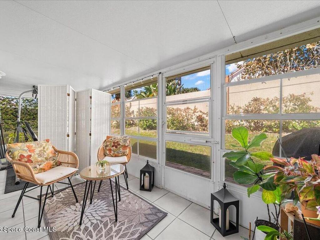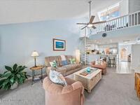 Experience coastal comfort in this exclusive South Beaches condo. All bedrooms and baths are conveniently on the first floor, with a cozy 813 loft upstairs perfect for an office or guest retreat. Soaring ceilings and abundant natural light create an airy, welcoming feel. The updated kitchen features SS appliances, a contemporary backsplash, and a breakfast bar for casual dining and entertaining. Enjoy upgraded carpeting, a refreshed main bath with walk-in shower, and major updates: AC in/out 2023, HWH 2023, new ductwork, and a 2021 roof for lasting confidence. The spacious sunroom adds valuable extra living space, and extended pavers are ideal for grilling and relaxing. Community highlights include a heated/cooled pool, club house, private beach access to enjoy unforgettable sunrises and rocket launches, a river pier to relish the stunning sunsets, and a boat/kayak ramp for fun on the water. Easy proximity to shops and great restaurants. Every day feels like a getaway!
