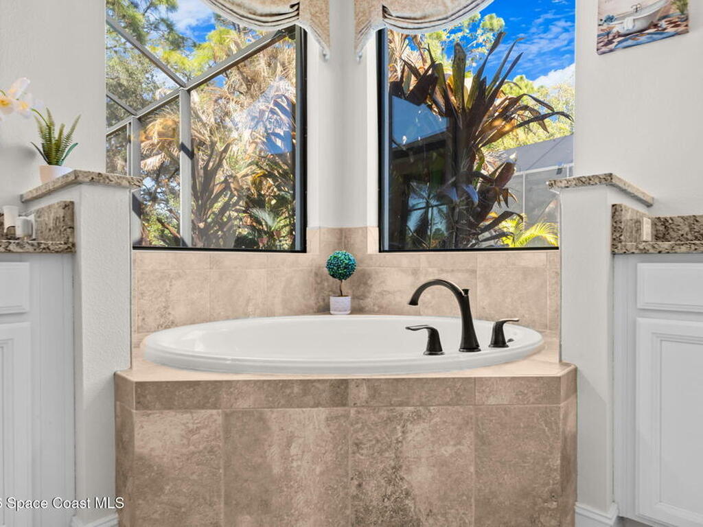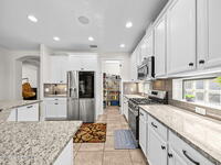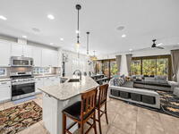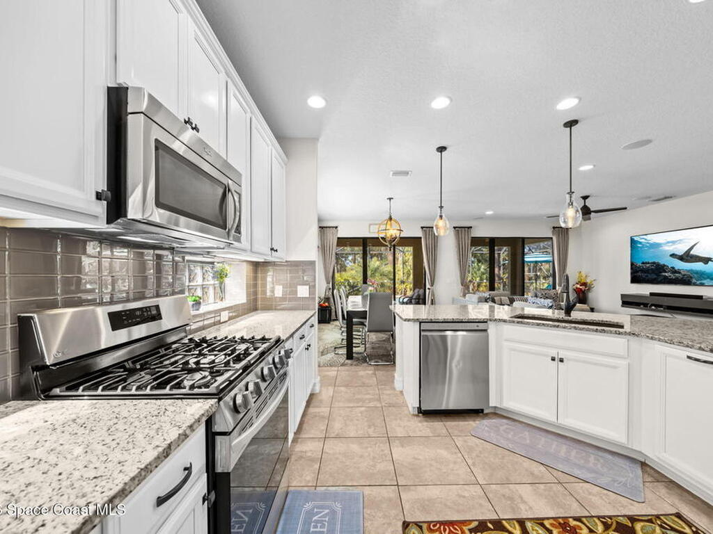 Saltwater pool. Summer kitchen. Preserve privacy with lake glimpses.Experience the Florida lifestyle in this beautifully maintained home backing to lush conservation. Fresh interior paint, plantation shutters, tall baseboards, whole house surround sound speakers, and tile flooring create a clean, modern feel throughout generous living and dining spaces. Two sets of triple sliders open the family room seamlessly to a screened lanai and sparkling waterfall pool, perfect for entertaining or relaxing in total privacy.The kitchen is designed to impress with granite countertops, glass tile backsplash, stainless steel appliances, gas range, breakfast bar seating and white crown-molded cabinetry with under-cabinet lighting.Retreat to a spacious primary suite with double-door entry, large walk-in closet, dual granite vanities, soaking tub and a mosaic-tiled shower.Private, polished and truly move-in ready.