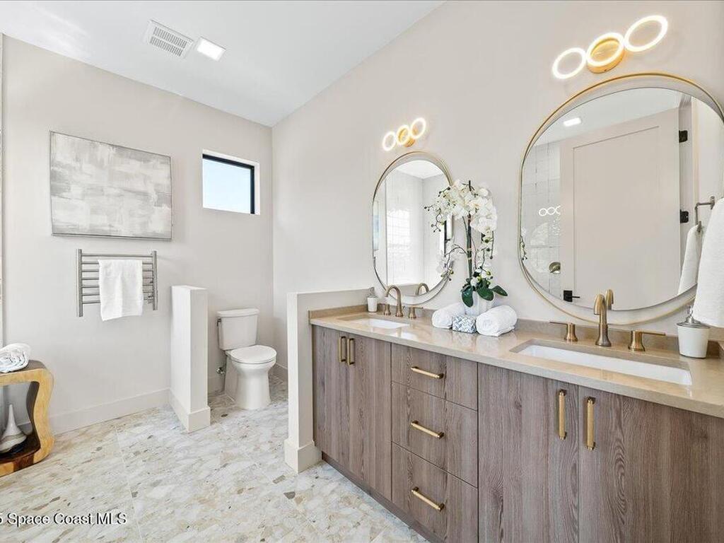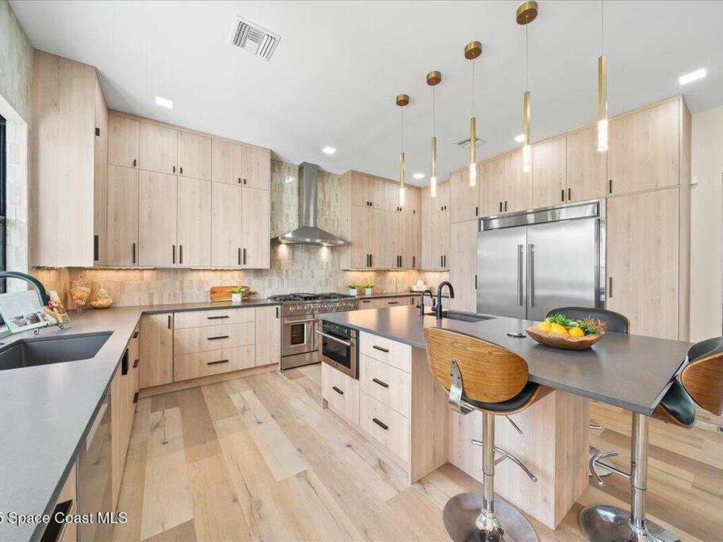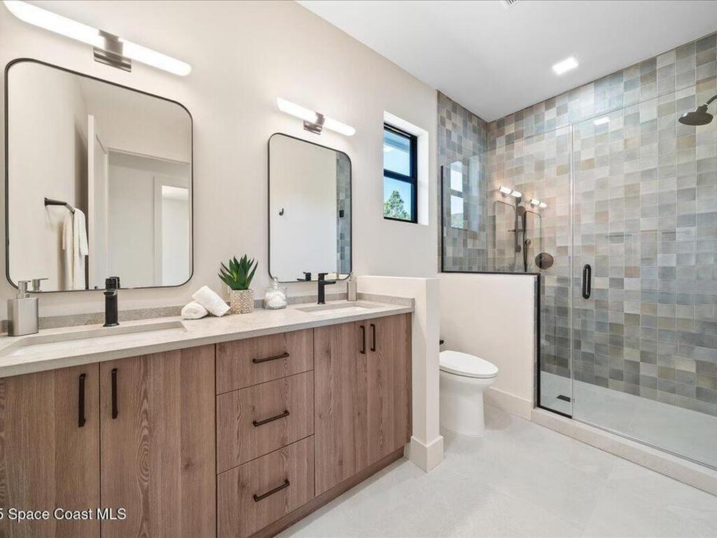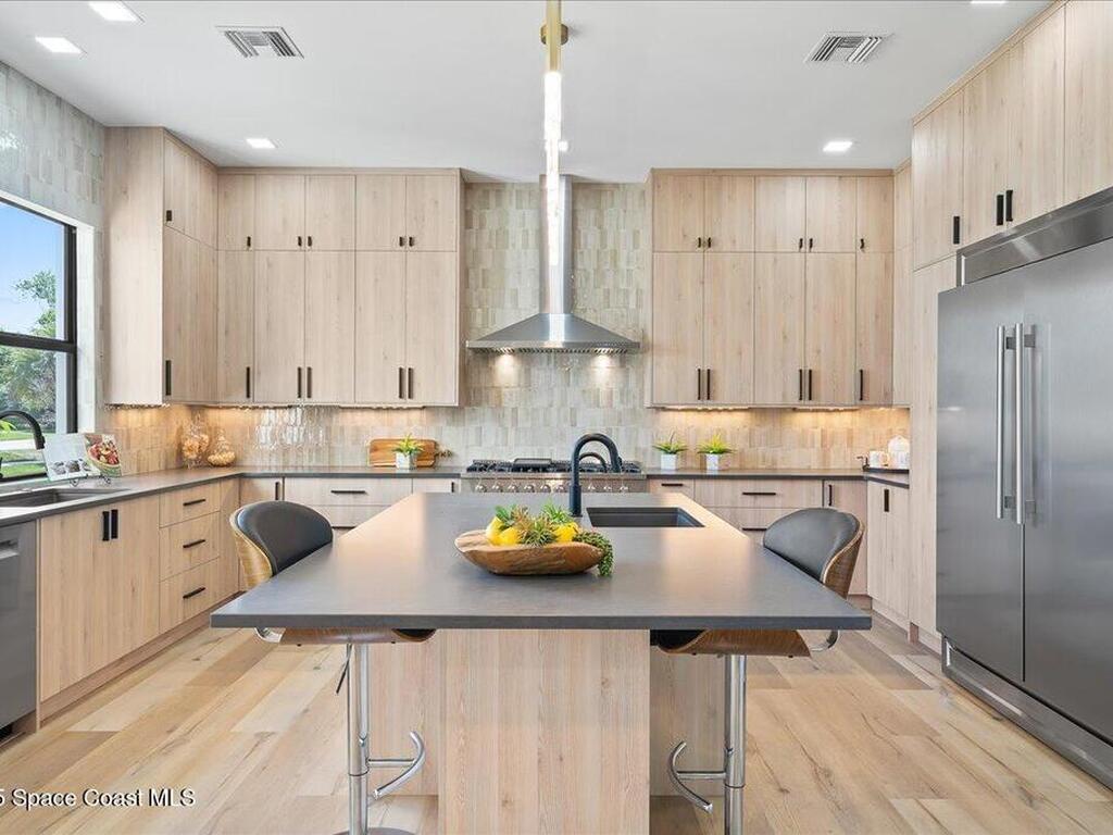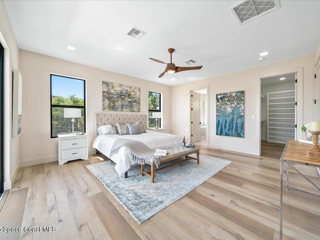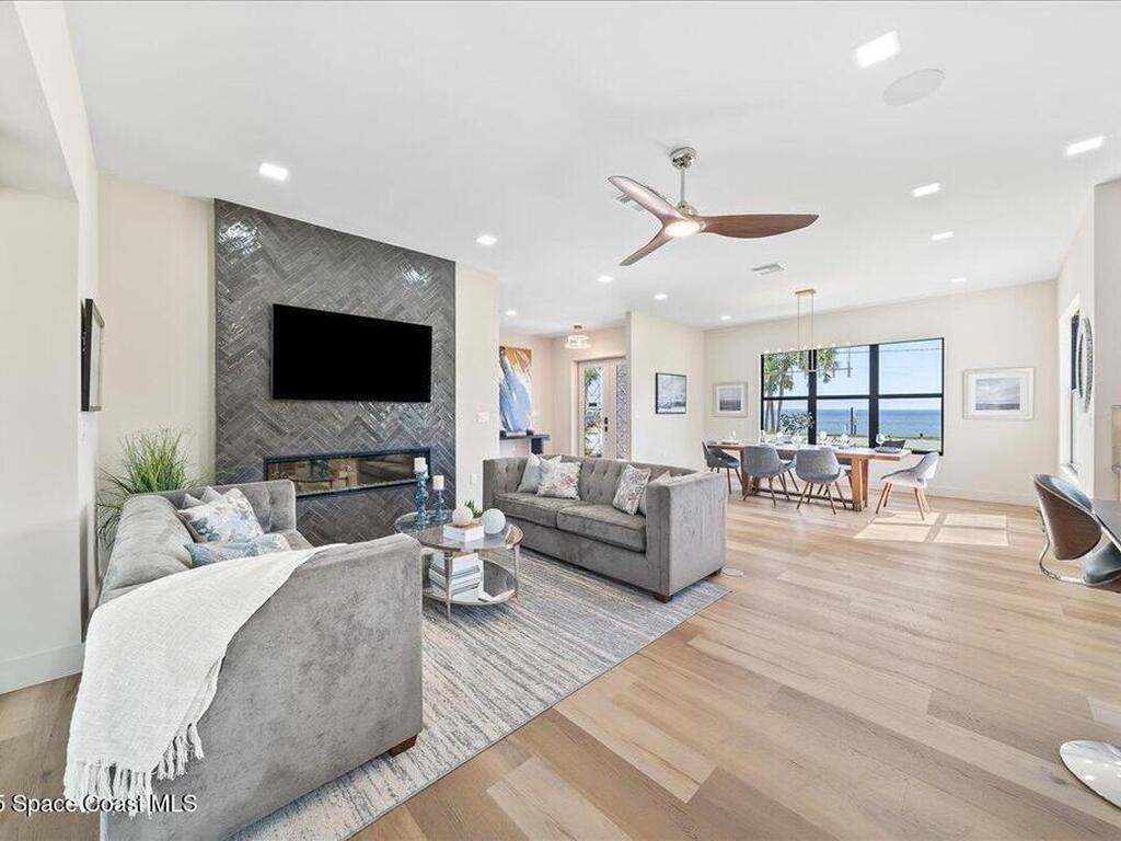 Waterfront dream with direct rocket launch views. Sitting directly across from the Kennedy Space Center, this California Modern beautiful home sits front and center of the breathtaking views of the Indian River and its surrounding natural beauty. Featuring an open floor plan combining the love of luxury with the warmth of Florida living it offers 4 spacious bedrooms with 3.5 bathrooms. Entertain in the relaxing escape to backyard oasis featuring a fenced in pool, spa, and summer kitchen. If waterfront living is for you, this is a must see.