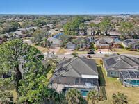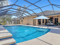 Absolutely gorgeous pool home located in exclusive Augusta Trace. Only 54 executive homes in this dead end street community. Lots of mature trees & landscape w/tons of character. $125, 000 pool package! Huge screened heated pool w/beach area & umbrella, LED lit shooter fountains & waterfall. Pool has multiple lights & show options. Large covered area w/grill/green egg patio furniture(negotiable). Amazing area for outdoor entertaining. Truly must see. New TILE roof in 2020. New AC in 2021. All new flooring in 2023. Chefs island kitchen w/42in cabinets w/crown molding & solid surface countertops. Nice primary suite w/extra sitting room, double walk-ins, & garden tub/separate shower. Oversized 650 sq ft garage. 4 camera security system. Hurricane shutters. Great curb appeal w/brick paver driveway & stone accents. Pride of ownership throughout w/nice upgrades. Great location! Don't miss it!
