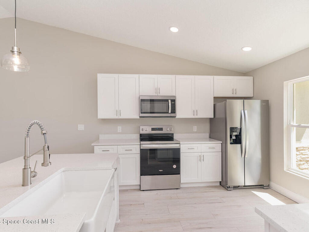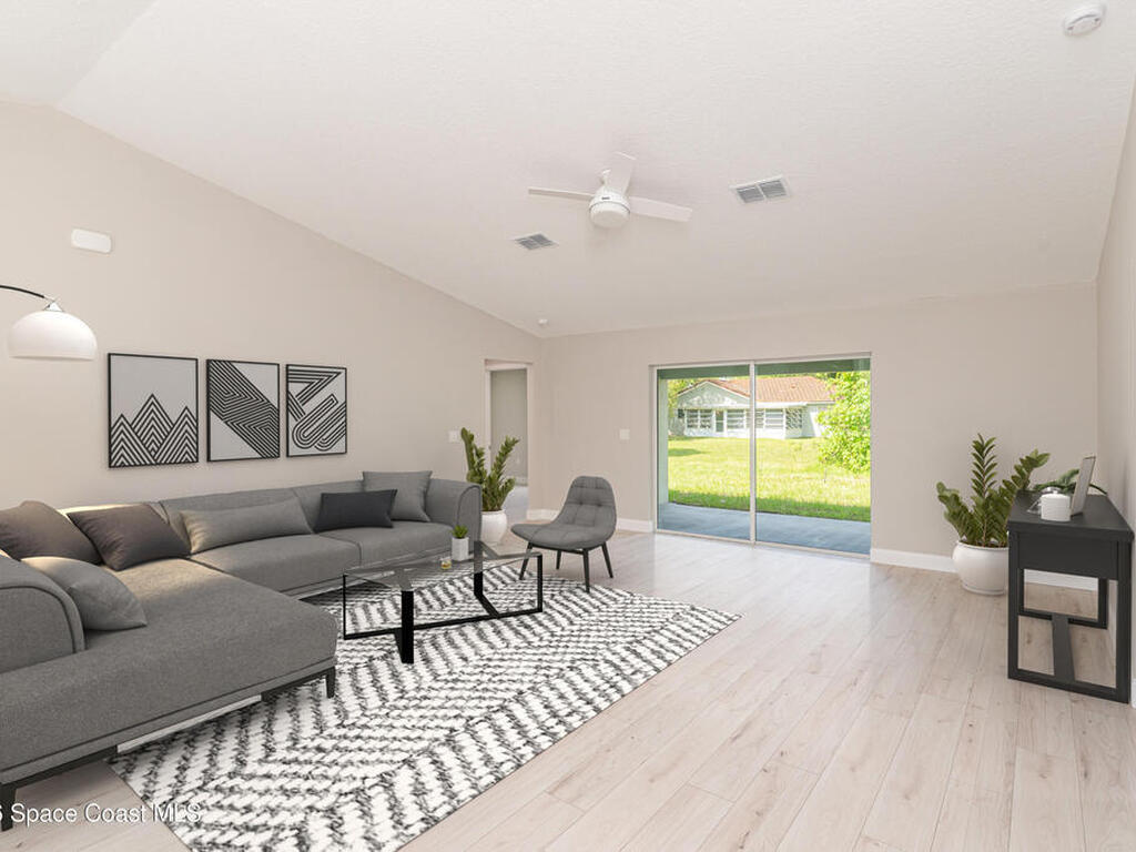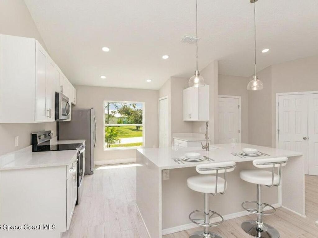 NO CLOSING COST LOANS AVAILABLE | NEW CONSTRUCTION Experience modern luxury in this exquisitely crafted 3/4-bedroom, 2-bath residence located in the heart of Palm Bay. Designed with an open-concept flow, the home features a Chef's Kitchen complete with a granite prep island, solid wood soft-close cabinetry, and premium stainless steel appliances.The spacious layout is bathed in natural light, leading you to a massive Primary Suite designed for ultimate relaxation. This home is defined by its high-end, included upgrades:Flooring: Luxury Vinyl Plank throughout (no carpet!).Bathrooms: Floor-to-ceiling shower tile, custom niches, and granite vanities.Details: Solid wood cabinets, designer hardware, and an electric garage opener.Note: One or more photos have been virtually staged.