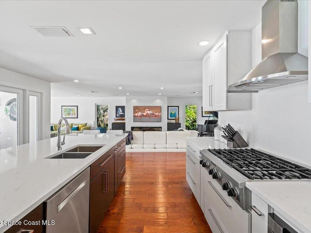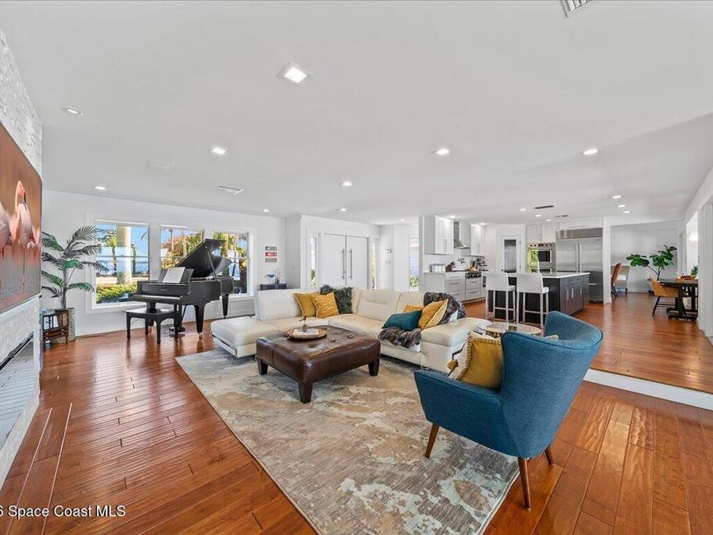 A fully reimagined, turn-key Indian River front property offering privacy, performance, and exceptional waterfront living. A rare direct Indian River waterfront estate offering 100 feet of frontage on .64 acres in the heart of Melbourne Beach. Oriented west to capture extraordinary sunsets across the wide river basin, this 4-bedroom, 2.5-bath residence spans 3, 361 square feet of extensively redesigned living space. The home was thoughtfully expanded and structurally improved to maximize light, scale, and water views. A reconfigured open floor plan flows toward 7' x 12' pocketing impact sliders, creating a seamless transition to the waterfront. The 2022 kitchen renovation features Sub-Zero and Wolf appliances, an expanded island, custom cabinetry, and elevated finishes suited for both entertaining and everyday living. The primary suite was enlarged to create a true private retreat with a freestanding soaking tub, multi-head shower, quartz counters, custom cabinetry --
