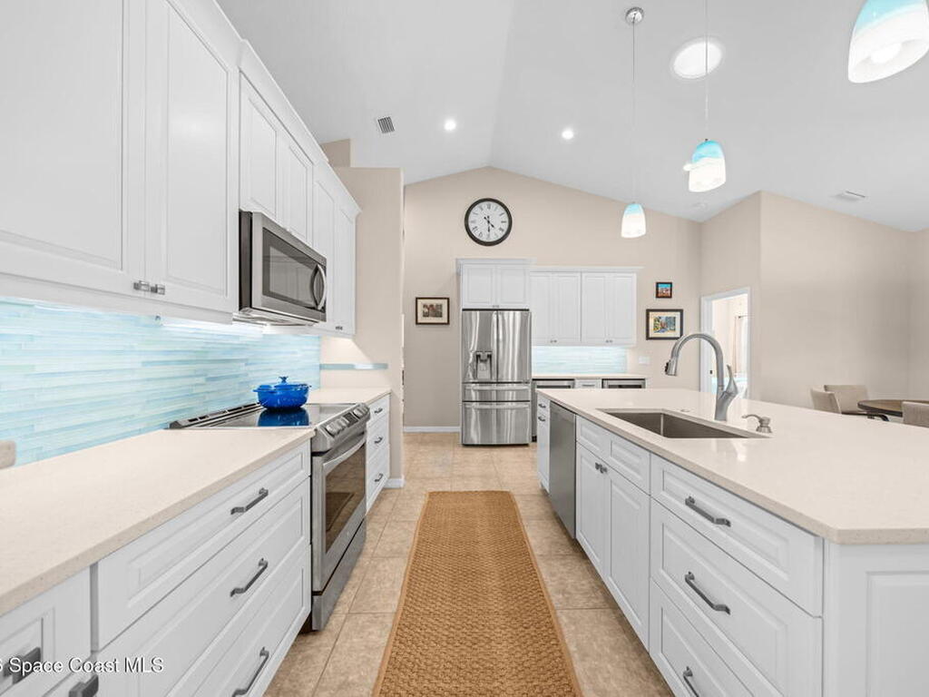 From driveway to dock in moments--welcome home. Located in a private, gated community with exclusive access to a community boat ramp and fishing pier on the Indian River Lagoon, this beautifully remodeled 4-bed, 3-full bath home offers nearly 2, 500 sq. ft. of thoughtfully updated living space. The open layout and desirable split floor plan provide seamless flow, functionality, and privacy. The standout chef's kitchen boasts high-end finishes, premium appliances, and generous workspace--ideal for cooking and entertaining. Luxurious updates elevate all three bathrooms, while an additional flex room/office provides versatile space for work or guests. Step outside to a screened lanai overlooking your heated pool--perfect for year-round enjoyment and front-row rocket launch views under Florida's endless skies. Enjoy an oversized garage and spacious .35-acre lot. Located near Kennedy Space Center and beautiful beaches, this home delivers the ultimate Space Coast lifestyle.