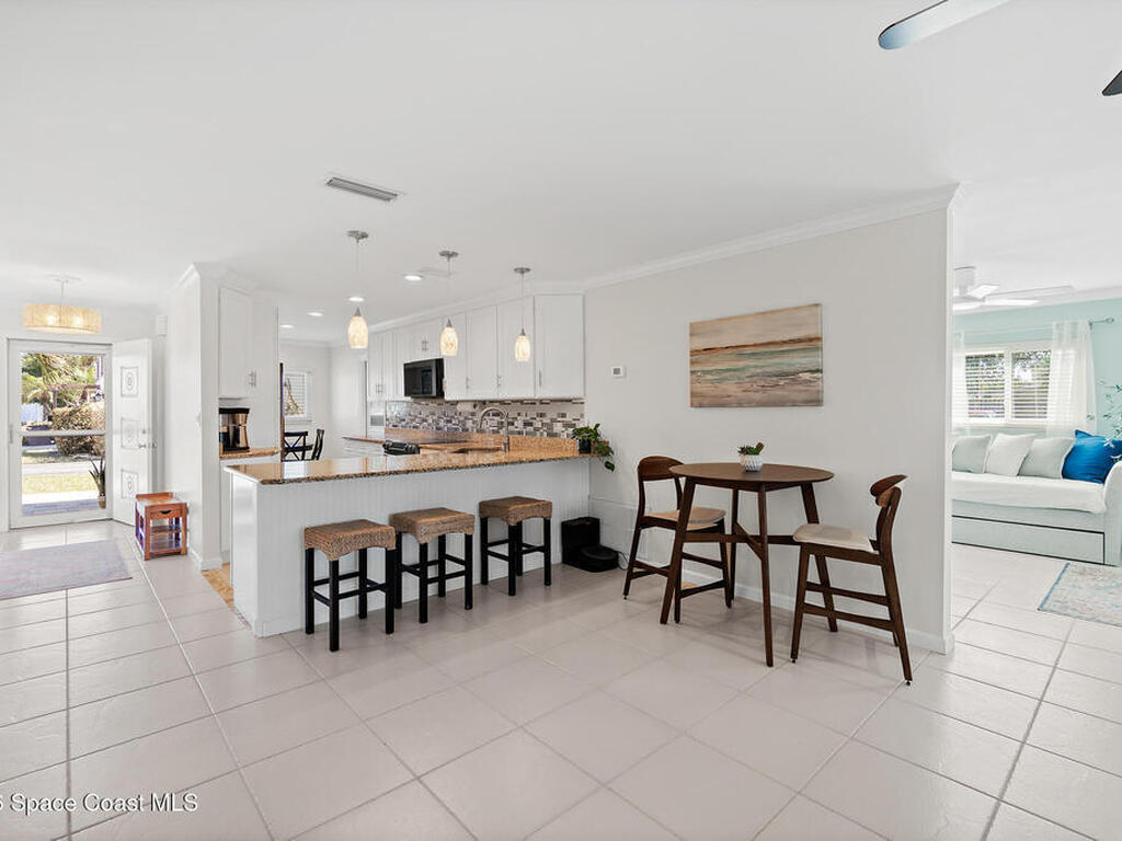Welcome to beach living at its finest with this beautiful end-unit 2-bed, 2-bath + flex space townhome. This single-level gem is bathed in natural light, thanks to abundant impact windows (2020), offering an inviting atmosphere that feels more like a standalone home. Inside, discover 2 spacious bedrooms with ample storage, a versatile flex space perfect for an office or guest room, and an enclosed Florida room with new 2024 ceiling and fan that invites you to unwind and watch birds by the pond. The eat-in kitchen, light and bright with elegant finishes. Skyline Estates is pet friendly and less a 5 min. walk to the beach. Recent upgrades include new AC and hot water heater (2023), air handler (2024), ductwork (2025), tile roof (2000), flat roof (2021), and storm shutters, front door, and garage door (2022). The spacious 1-car garage and paver driveway/patio (2024) offer plenty of parking. Move-in ready, this turnkey home is ideal for anyone seeking a vibrant life on the beach