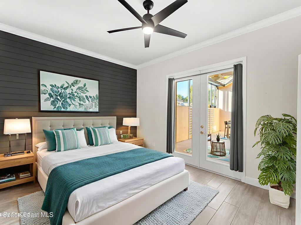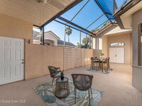 Morning light pours through vaulted ceilings into a soaring great room that spills effortlessly into a private courtyard entry--the seller's favorite place to unwind after salty beach walks and sunset bike rides. Just moments from deeded ocean access, every day begins and ends with the rhythm of the waves. Granite countertops anchor an open kitchen designed for easy gatherings, while new luxury vinyl plank and tile flooring keep life carefree and sand-friendly, while closet built ins keep things organized. A statement wall primary suite with an updated en-suite with stone shower flooring and oversized vanity round out the home. Tucked on a quiet cul-de-sac in Melbourne Beach, this half-duplex townhome delivers the best of coastal living without the fuss--updated with a 2022 A/C, 2023 water heater, second refrigerator in the garage and generator for peace of mind--so you can spend less time maintaining and more time embracing everything that makes beach life unforgettable.