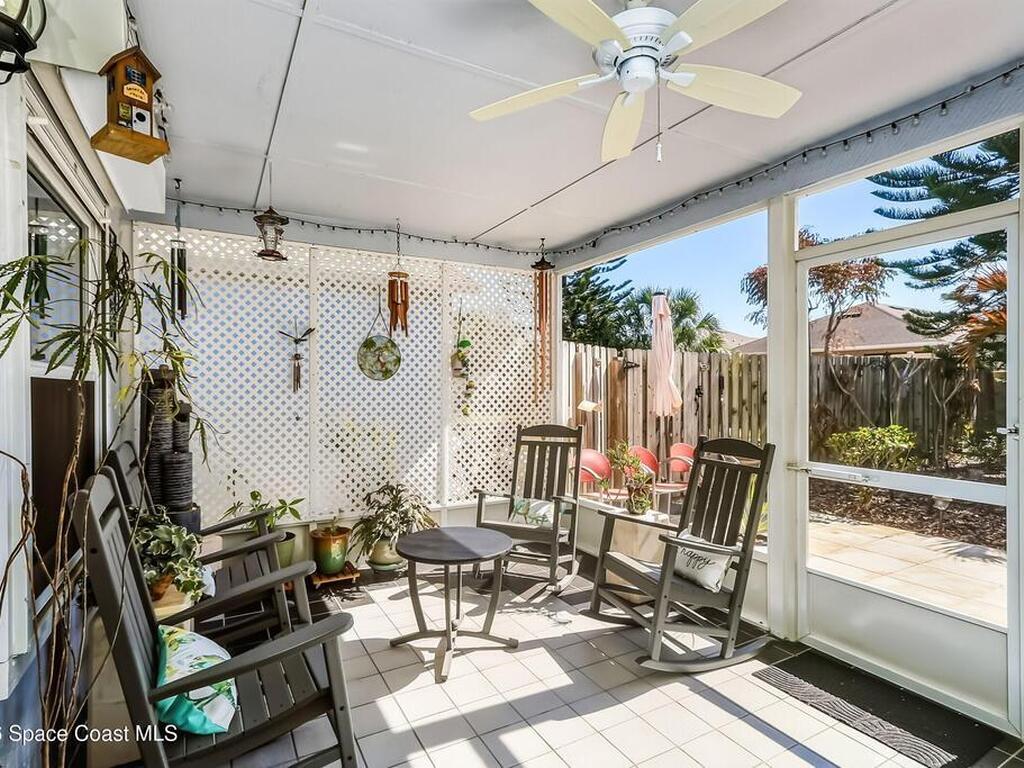 Lovely updated 3-bedroom, 2 bath split plan in South Oaks. One of a few privacy fenced yards in the community which is grandfathered in. Many updates including updated kitchen with stainless appliances and granite counter tops, both bathrooms fully updated, Double paned windows through out and roll down hurricane shutters. Tile and laminate flooring, no carpet! Light and bright open floor plan. Roof and skylights replaced in 2014. Enjoy your tropical paradise from your screened in porch. Immaculate and move in ready! Low HOA fees include heated pool, clubhouse, hot tub, sauna, tennis, gym, and RV/Boat parking all for $117.00 per month including lawn care!