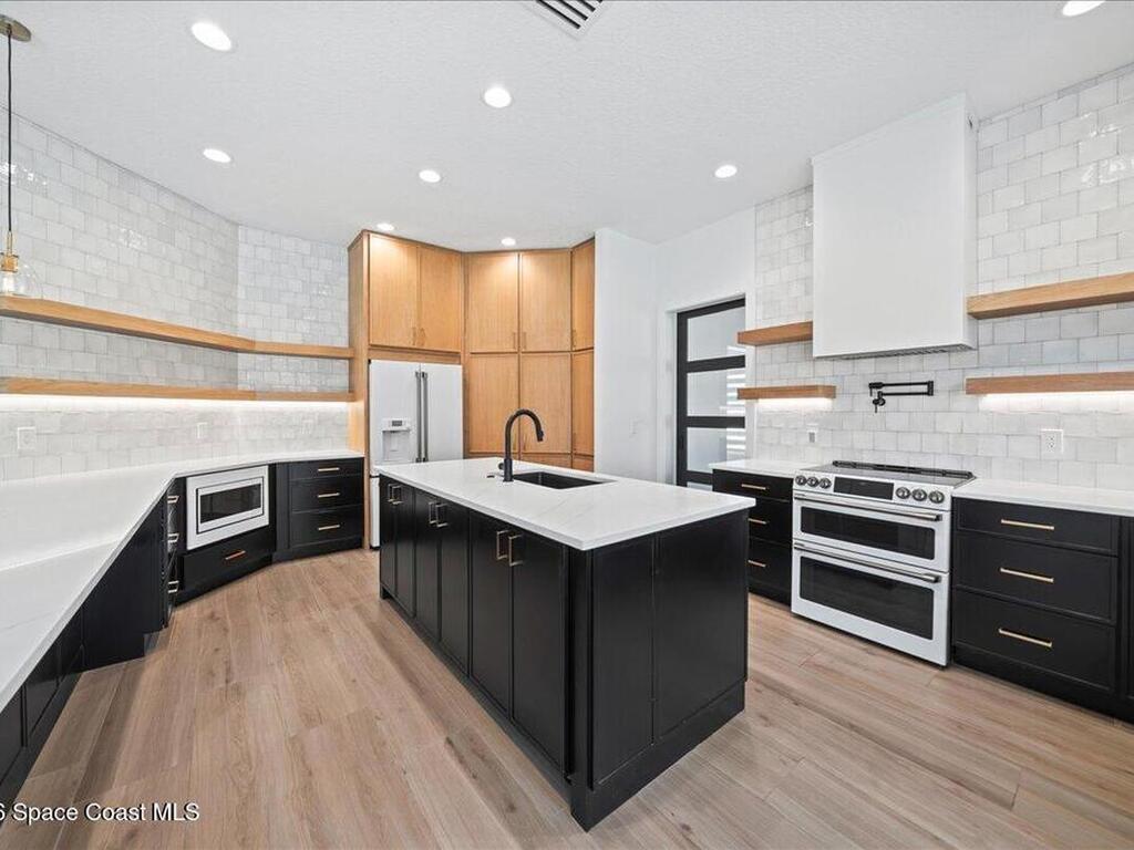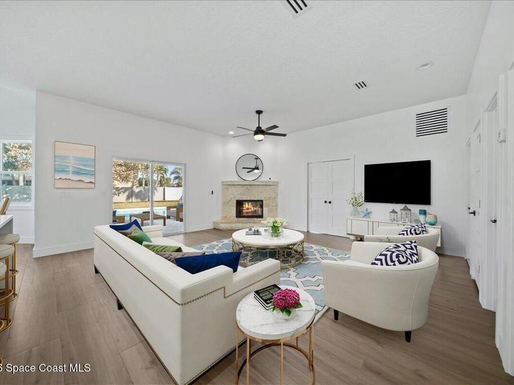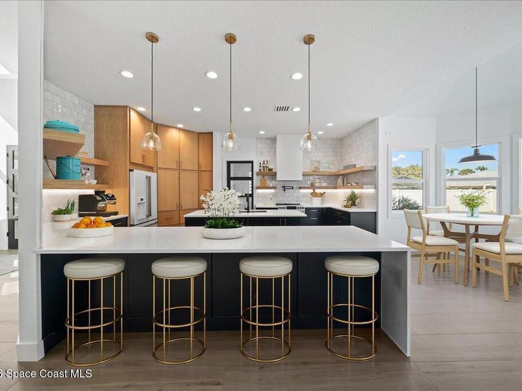 Tucked into a desirable coastal community this beautifully updated home offers the Florida lifestyle at its best. Conveniently located near the beach local parks and in close proximity to A-rated Gemini Elementary. The quiet neighborhood setting provides a relaxed and inviting atmosphere. The home features tall ceilings and has been freshly painted creating a bright open feel throughout.The remodeled kitchen showcases quartz countertops white appliances and stylish floating shelves ideal for both everyday living and entertaining. Hurricane-rated impact glass and doors provide added peace of mind along with a newer roof installed in 2021.Situated on an oversized corner lot the outdoor space is designed for enjoyment with fresh landscaping a vinyl fenced backyard and a pool with newly resurfaced finish. Enjoy scenic views of the golf course and lake offering a serene backdrop and enhanced privacy. Move-in ready and thoughtfully upgraded this home delivers comfort convenience and coastal