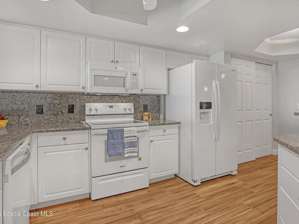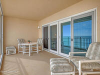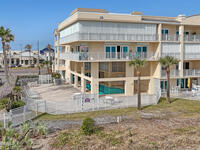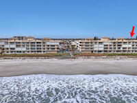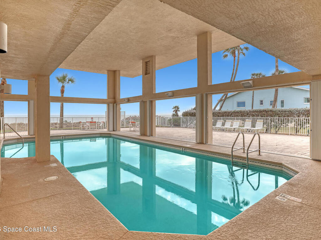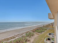 Beautiful top-floor condo with direct ocean views and an open, airy layout. This 3-bedroom, 2-bath residence showcases breathtaking beachfront vistas and an inviting open floor plan ideal for coastal living. Impact sliders and tile flooring define the spacious living and dining areas, opening to a private balcony overlooking the ocean. The kitchen features a large breakfast bar, kitchen island, granite countertops, white cabinetry, and white appliances--perfect for entertaining while enjoying the view. The primary suite is a serene retreat with private balcony access, dual walk-in closets, and an ensuite bath offering double sinks, a tile shower, and a jetted soaking tub. Two additional bedrooms provide quiet comfort, one with direct access to the second bath accented by finishes and tile. Condo offers a private walled one- car garage. Residents enjoy premium amenities including a heated community pool, ocean-view fitness center, and exclusive private ocean access.