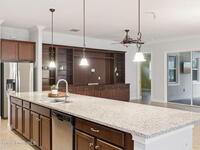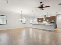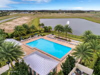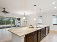 Stunning Del Webb home in the highly sought-after Twin Lakes gated 55+ community, where resort-style amenities and active adult living create the perfect Florida lifestyle. This beautifully designed Marco model is a 3-bedroom, 3-bath home with over 2, 300 square feet of living space that offers the ideal balance of comfort, elegance, and functionality. As you enter, you're welcomed into a spacious entry foyer that leads into an open floor plan showcasing tall ceilings and crown molding throughout! The living room showcases a panoramic view of the screened lanai and features custom built-ins, including an entertainment center and Bose surround sound system. At the heart of the home is a true chef's dream kitchen, complete with a beautiful center island, 42'' upper cabinets, gas range, built-in oven, butler's pantry, and walk-in pantry. Whether hosting guests or enjoying a quiet evening in, this space was made to impress. A versatile den provides the perfect setting for a home office,