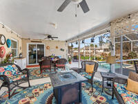 Located in a highly desireable non HOA community we have this fully fenced 3/2/2 with an oversized, jetted, heated spa/plunge pool & waterfall feature. CBS construction with triple pane impact glass and 2021 roof+ gutters for peace of mind with city water. The residence features traditional split floor plan with captivating vaulted ceilings, electric fireplace and fresh interior paint. Home features an updated kitchen, granite countertops, shaker cabinets, built-in pantry with pull outs and breakfast bar. Newer LVP in the family room, dining room and bedrooms. Primary bedroom showcasing the his and her walk-in closets, barn door for bathroom privacy, dual sink vanity & walk-in shower. Spacious guest bedrooms with granite countertops top vanity in guest bathroom and shower/tub combo. Enjoy this outdoors slice of paradise rescreened and painted lanai with your heated pool, selection of two patios & low voltage lighted fenced in yard.