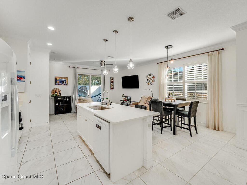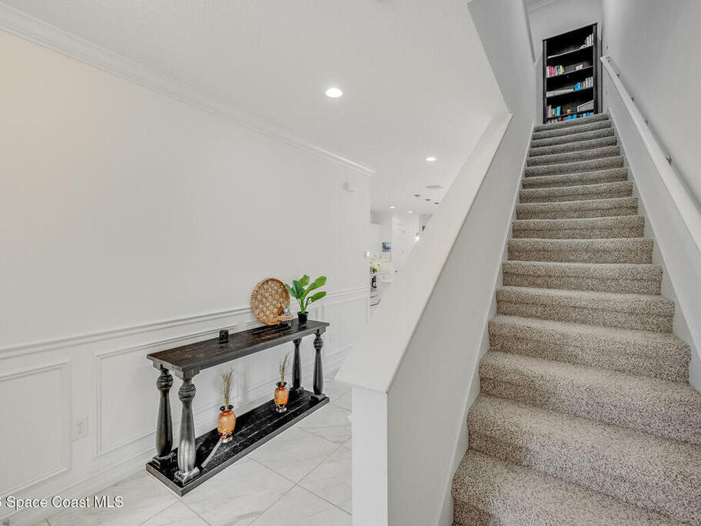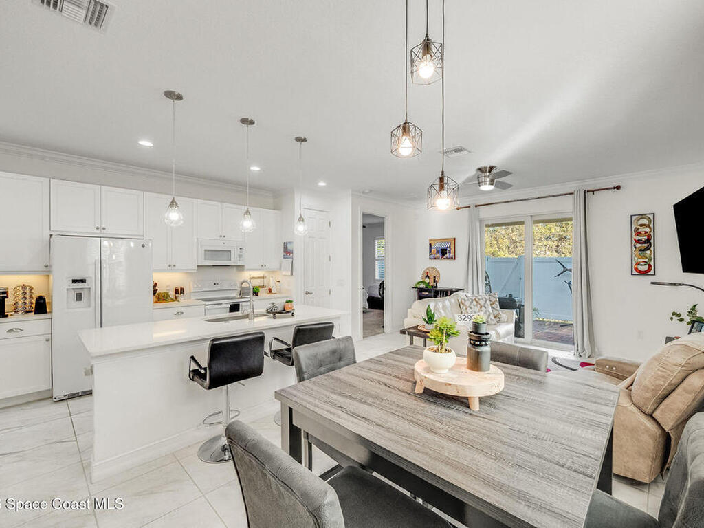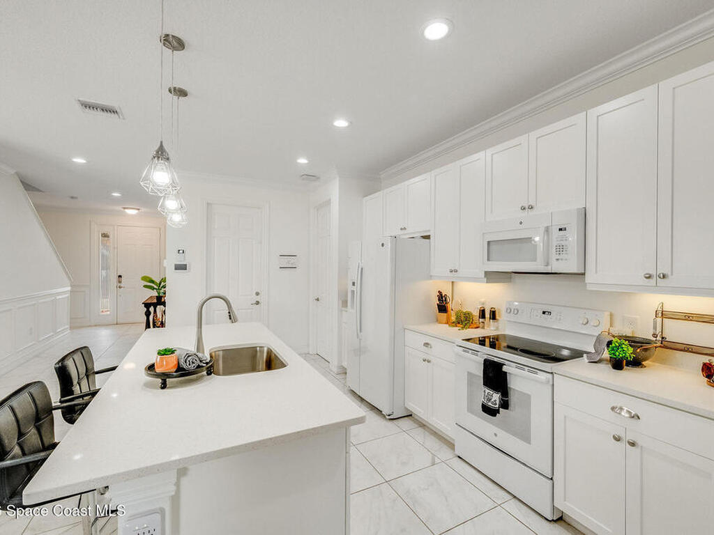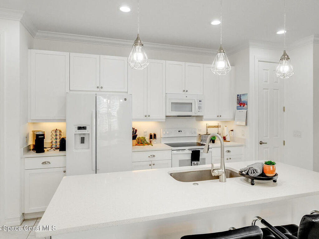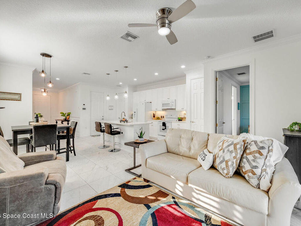 Built in 2020 and formerly the model home in Riverwalk of Melbourne, this end-unit townhome is filled with natural light and upscale finishes throughout. Featuring crisp white cabinetry, quartz countertops, marble-look tile flooring, crown molding, and custom woodwork accents, every detail was thoughtfully selected to showcase the builder's best design. While some homes in the community date back to 2007, this newer construction stands apart with modern style and energy efficiency. The open-concept layout flows beautifully for everyday living and entertaining. Enjoy a small fenced yard for added privacy and a finished garage with upgraded flooring -- a signature model home feature. Very lightly lived in and impeccably maintained, this move-in-ready home offers low-maintenance living in an ideal Melbourne location close to shopping, dining, major roadways, and the beaches.