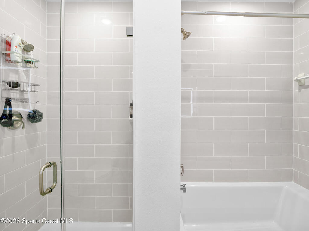 Rare Top Floor Corner Unit! The front bedroom has its own private balcony and then you have a second wrap around balcony with access from the living room and primary bedroom with views of both the Sykes Creek and Indian River. Each bedroom has its own en-suite with an extra half bath in the hall for guests. Impact windows throughout for peace of mind and energy efficiency. Spacious Primary bedroom with a walk-in closet, primary bathroom that has a double vanity and a soaking tub with a separate shower. This unit comes with one designated parking space in the garage, and open parking outside. River Fly-In is only a two year old building with many amenities from a community pool, club house with a full kitchen, movie theater, gym, sauna, and many more amenities!